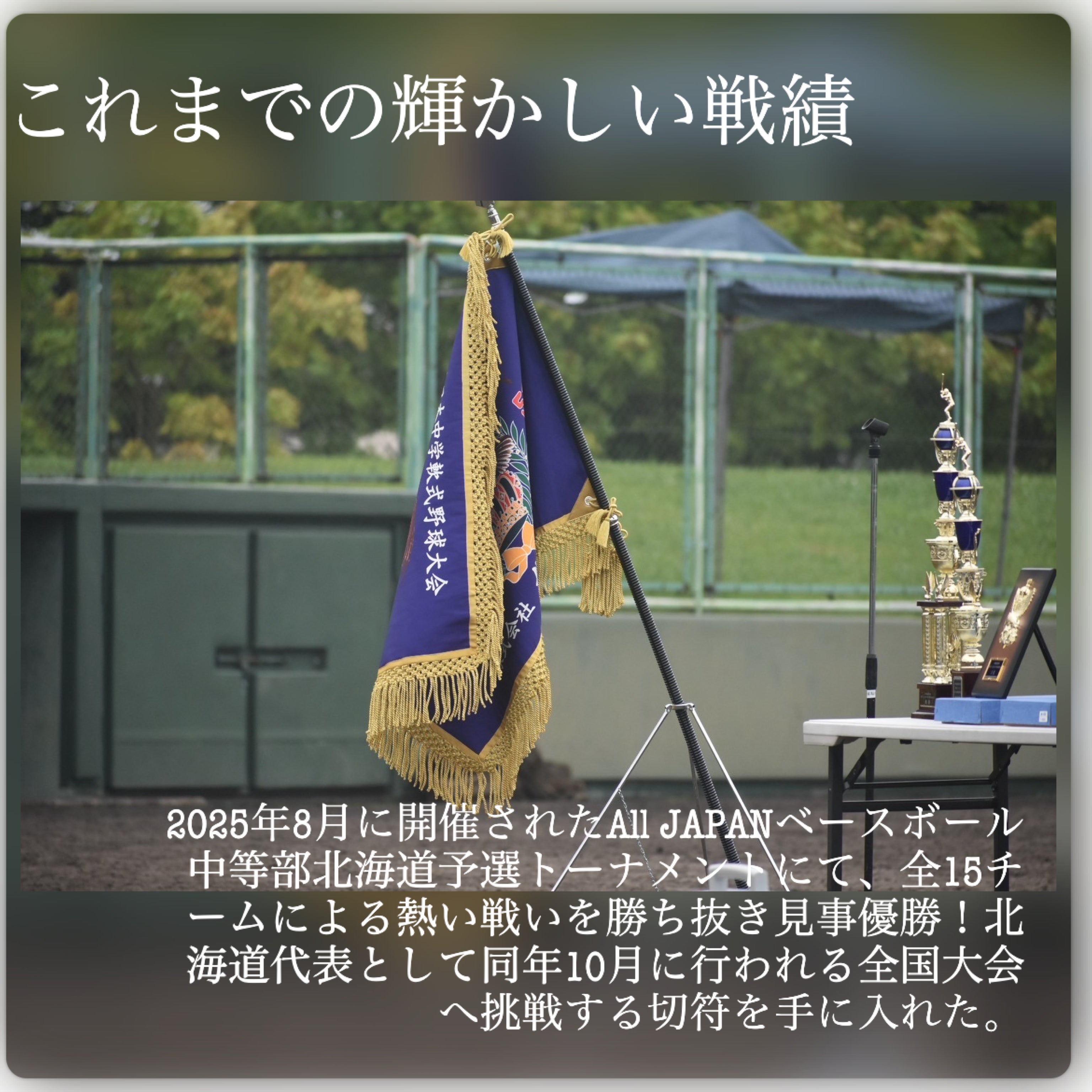 • 2025年 オールジャパンベースボール中等部2025全国大会北海道予選優勝