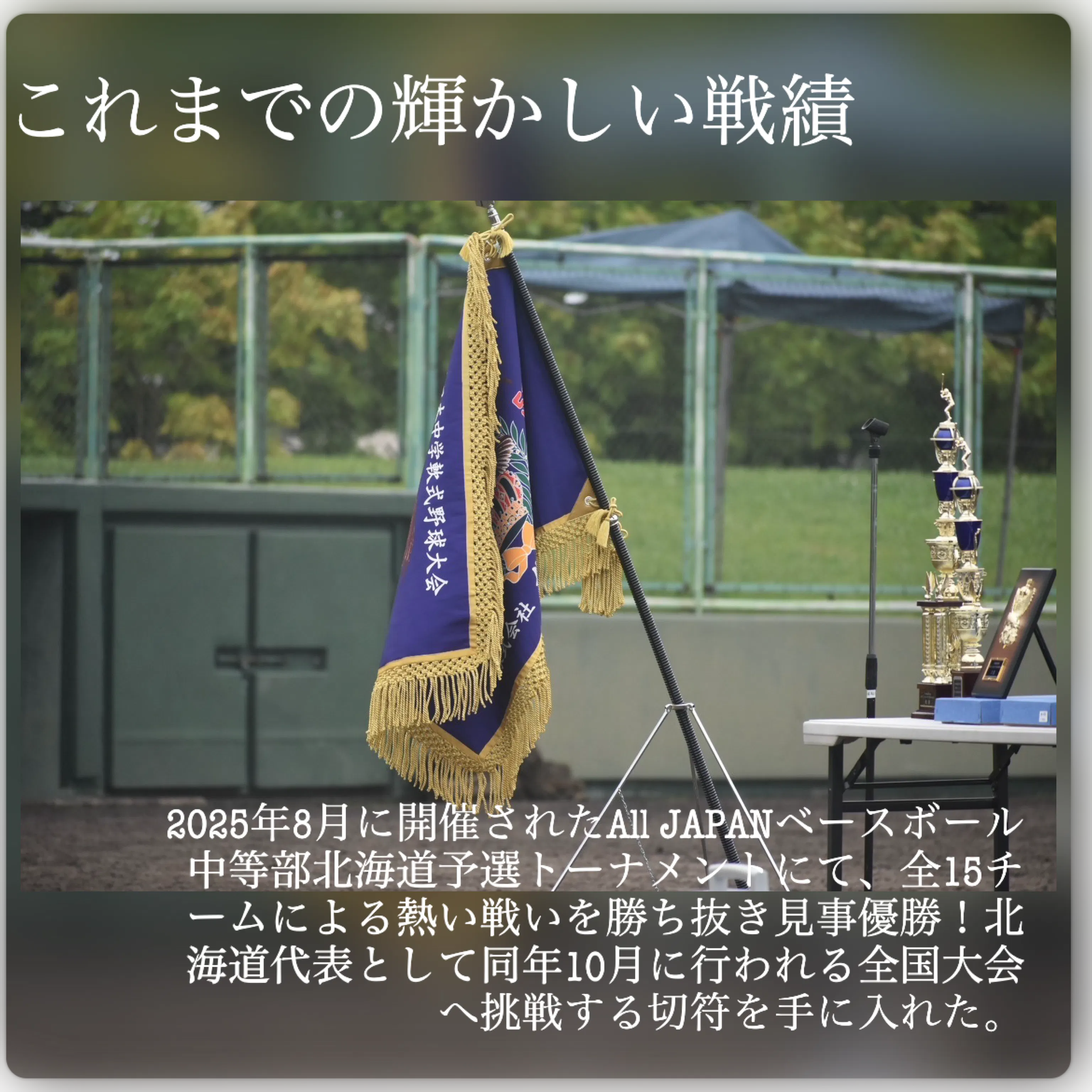 2025年は特に飛躍の年となり、第36回瀬戸内少年軟式野球広島県交流大会北海道予選で優勝、オールジャパンベースボール中等部2025全国大会北海道予選でも優勝を果たしました。