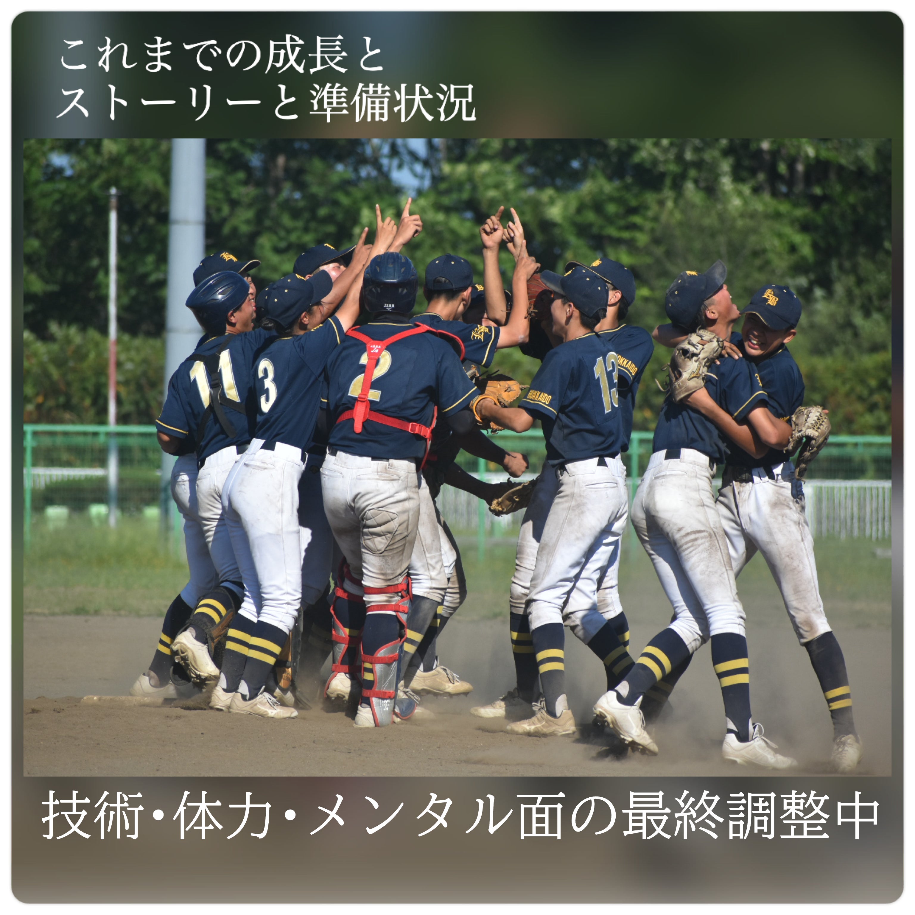 私たちは「大好きな野球を全力で楽しむ」をテーマに掲げ、全国制覇を目標とする、北海道北斗市を拠点とした中学軟式野球クラブチームです。