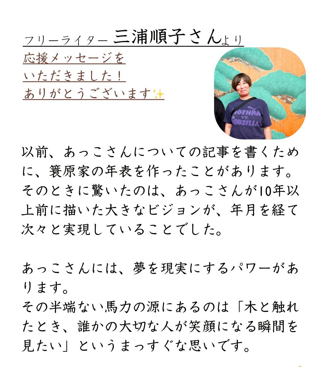 そして、フリーライター三浦順子さんより応援メッセージをいただきました!