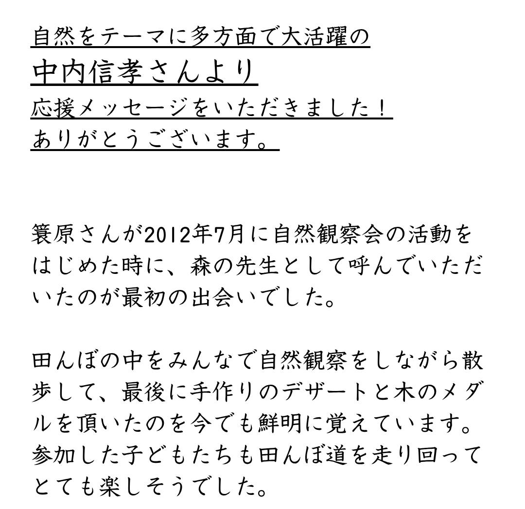 そんな中内さんから、今回のクラウドファンディングに心強い応援メッセージをいただきました。
