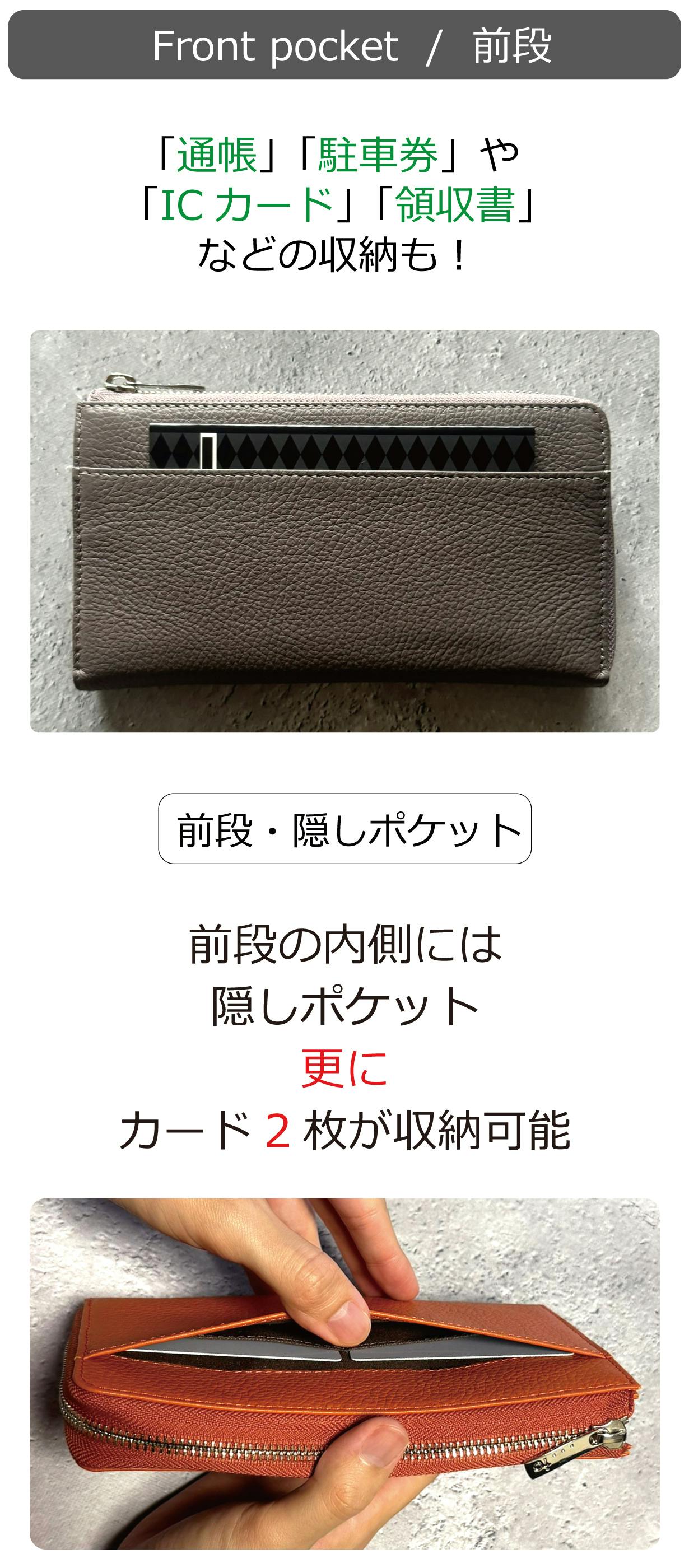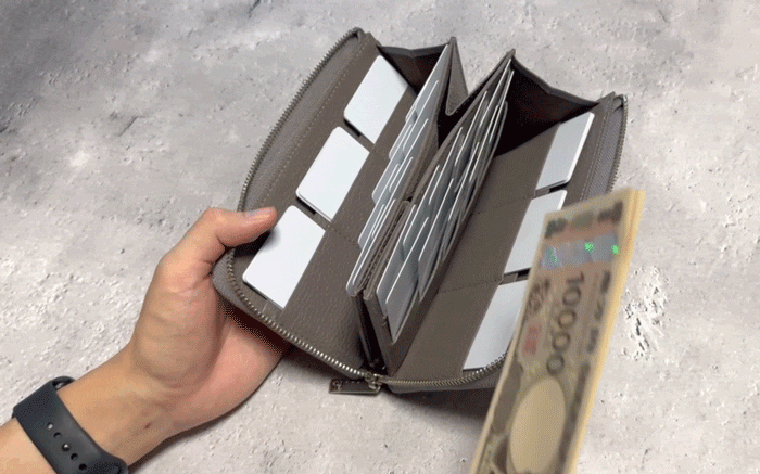 これにより財布自体が膨らみづらくなります。さらにファスナ―への負担軽減にもつながります。