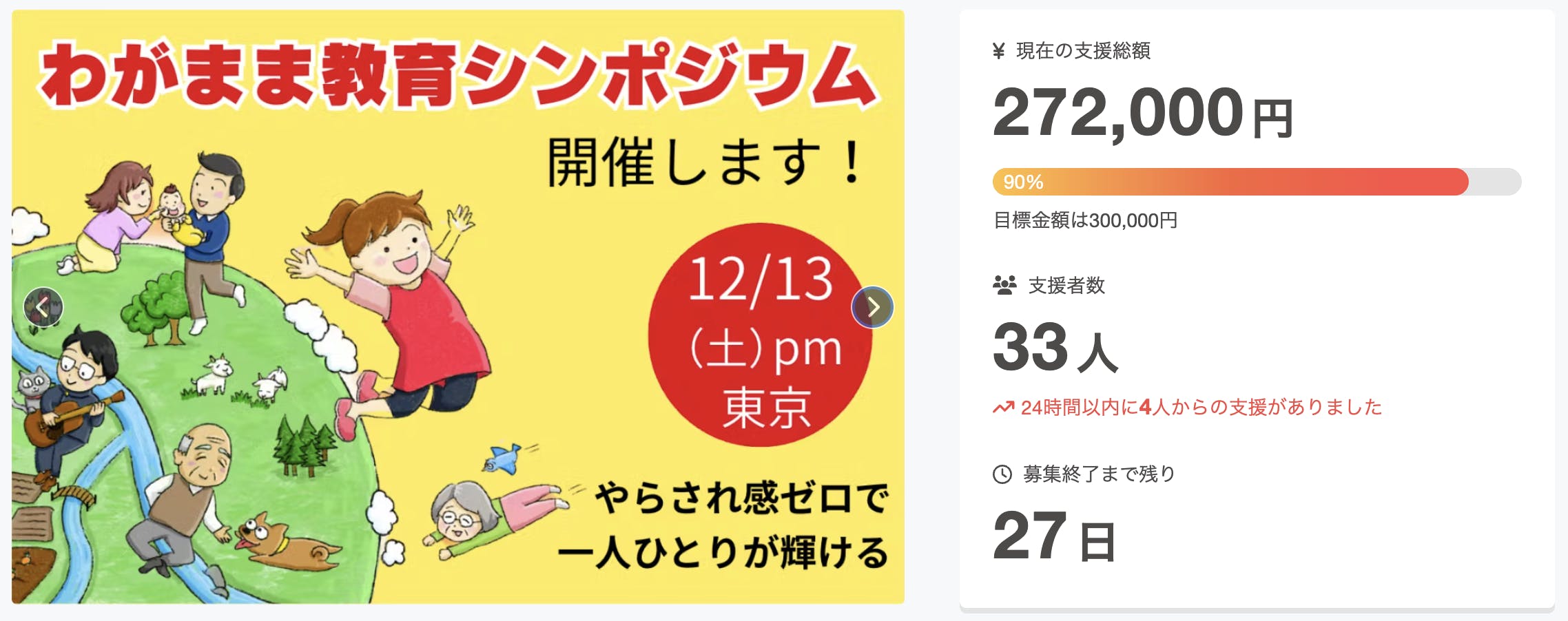 あと27日、目標達成まで残り10%となりました。