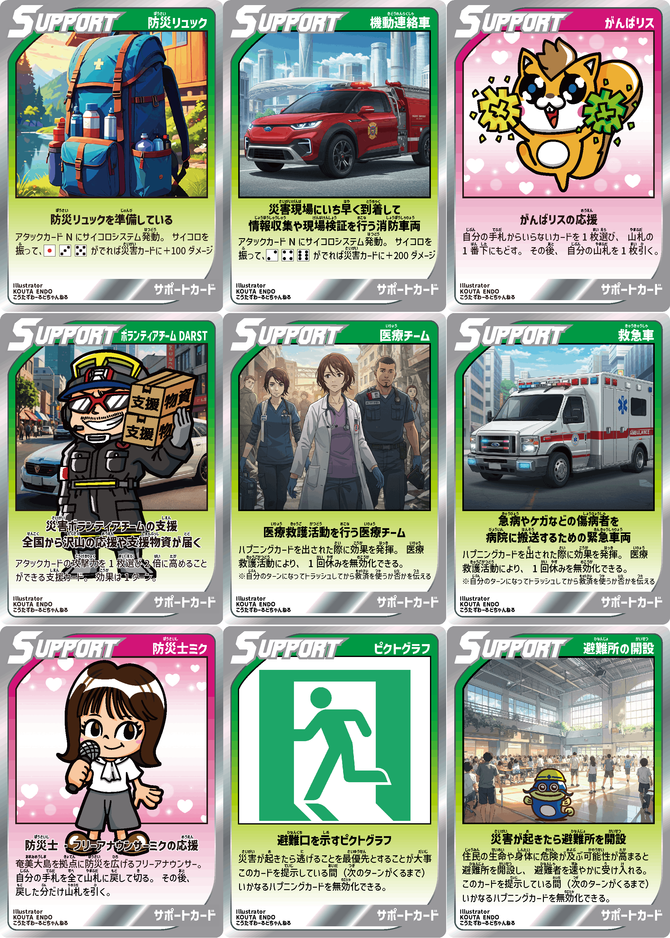 さらに、魅力的なキャラクターカードは、プレイヤーを非日常の世界へと誘い、災害に立ち向かうヒーローへと変身させてくれます。