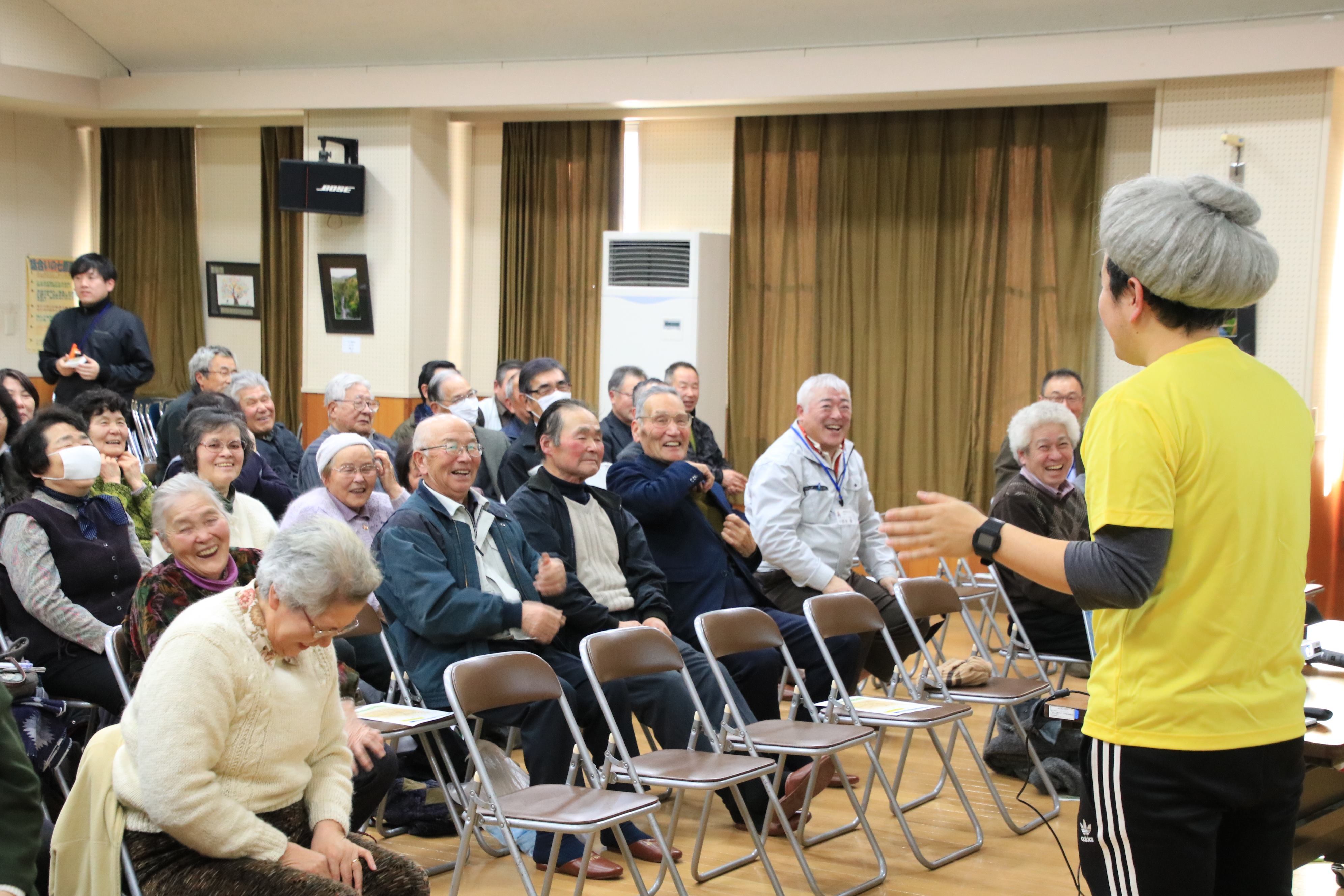 介護施設で働く人はもちろん、地域の体操教室を開催してい人、自分のおじいちゃんおばあちゃんを大笑いさせたい小学生まで、多くの人に習得していただきたいと思っています。