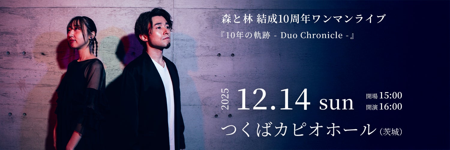 2025/12/18 19:302025年12月14日森と林 結成10周年記念ワンマンライブを、つくばカピオホールにて開催しました。この日に向かって歩いてきた一年。言葉にならないほど、最高で最幸の空間でした!「いつまでも待ってます」とたくさんの声をかけていただきこんなにも待ってくれている人がいるんだと思うと、胸がいっぱいです。ご来場くださった皆さん、支えてくれた関係者の皆さん、本当にありがとうございました。【サポートメンバー】Keyboard:丸木美花Bass:山下賢人Percussion:イトウ“ぼぶ”トモヒコ一旦は2人での活動はストップしますが、それぞれの場所で、音楽と向き合っていきます。また森と林として歌える未来を実現できるように、少しずつレベルアップしていきます。その時は、また元気で会いましょう!そして、このプロジェクトはここからリターン制作・お届けへと進んでいきます。引き続き、活動報告にて進捗をお知らせしていきます。 もっと見る【リターン】メッセージカード(データ)公開のお知らせ