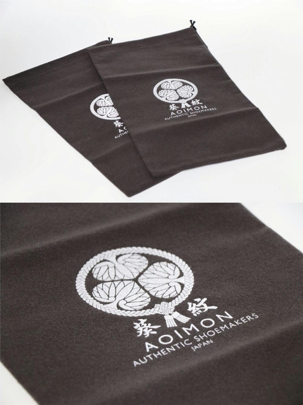 靴袋は、柔らかく上質で深みのあるグレー生地を採用。