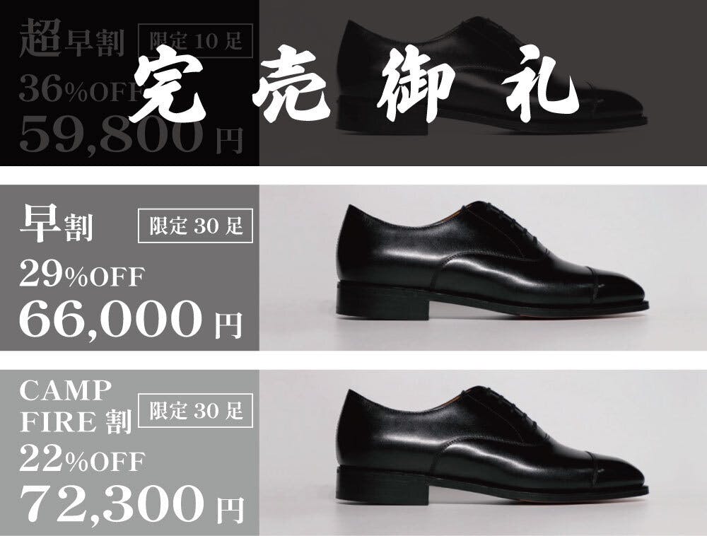 ★NEXTGOAL達成を前に、ご好評につき売り切れとなった【超早割】ストレートチップ駿府を3足限定で追加販売いたします。