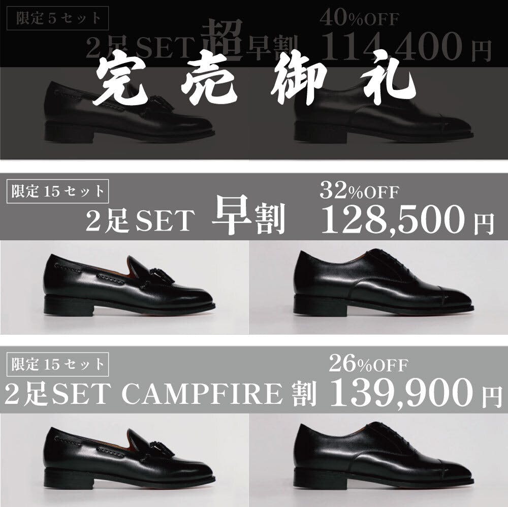 ★NEXTGOAL達成を記念して特別価格【2足セット37%OFF】タッセルローファー葵+ストレートチップ駿府を3セット限定で追加販売いたします。