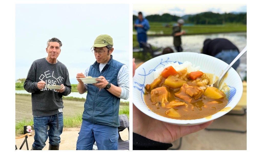 田んぼの前で風の匂いや土の温もりを感じながら、炊きたての美味しいお米と会津の旬野菜をふんだんに使った熱々のカレーをいただけることは本当に貴重な体験なんです。