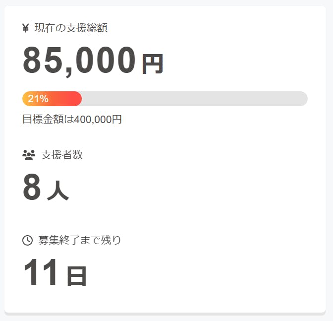 現在は目標達成には及ばず、正直苦しい状況です…!オフライン決勝まであと1週間。最高の舞台を作るため、どうか皆様の応援をよろしくお願いします!