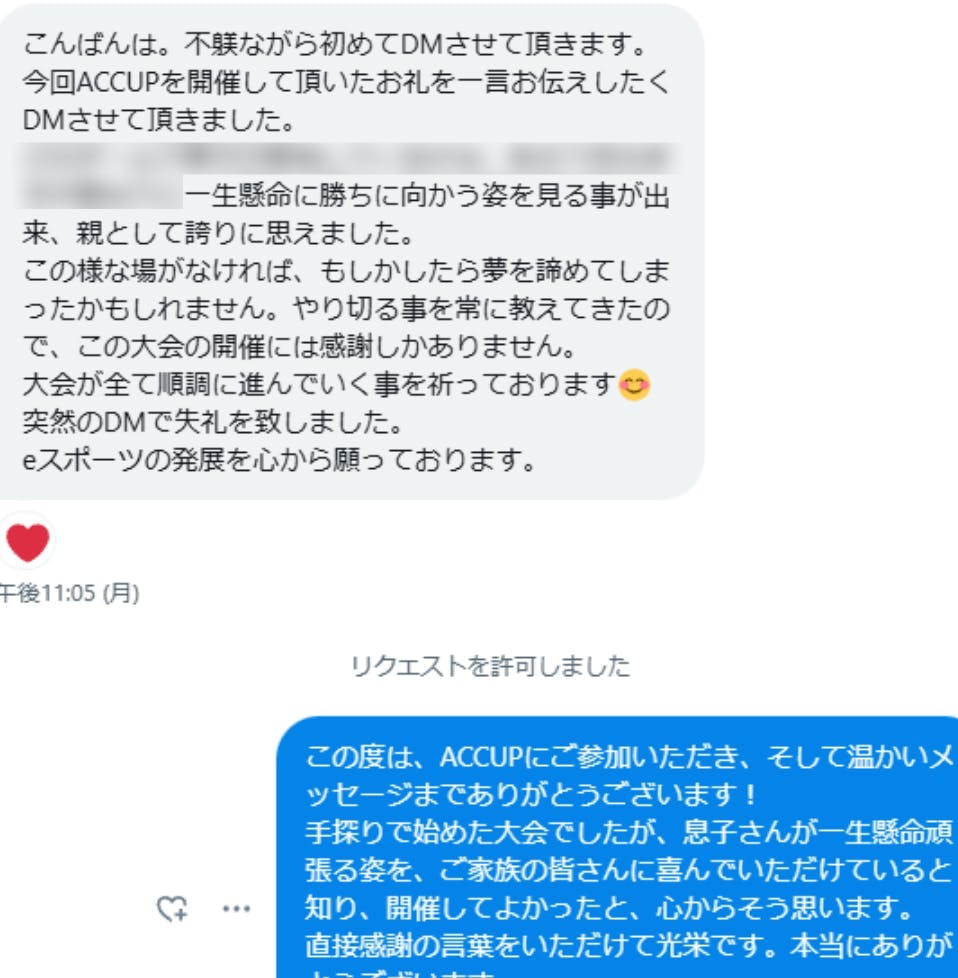 最後になりますが、大会期間中にあるDMを頂きましたので紹介させてください。