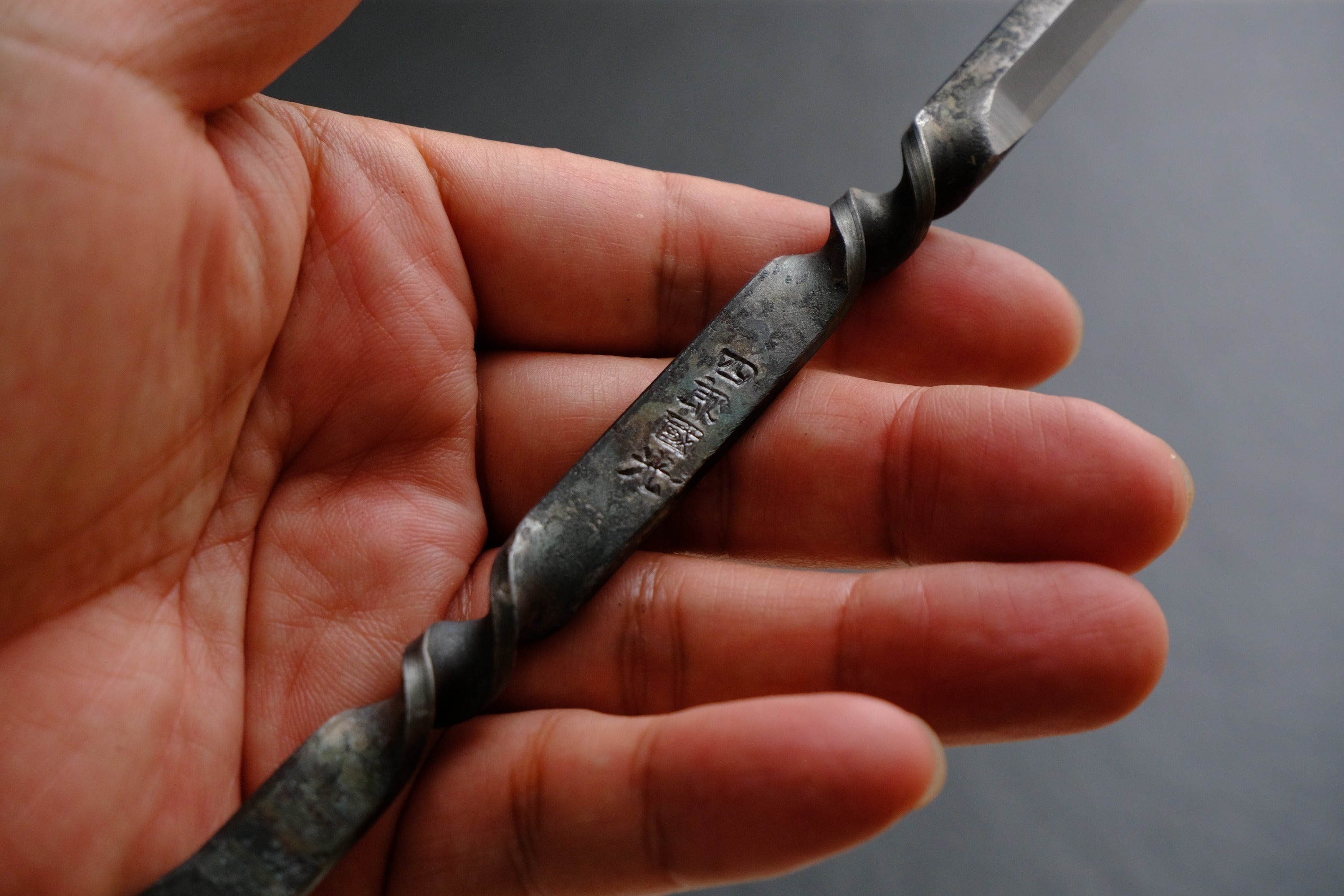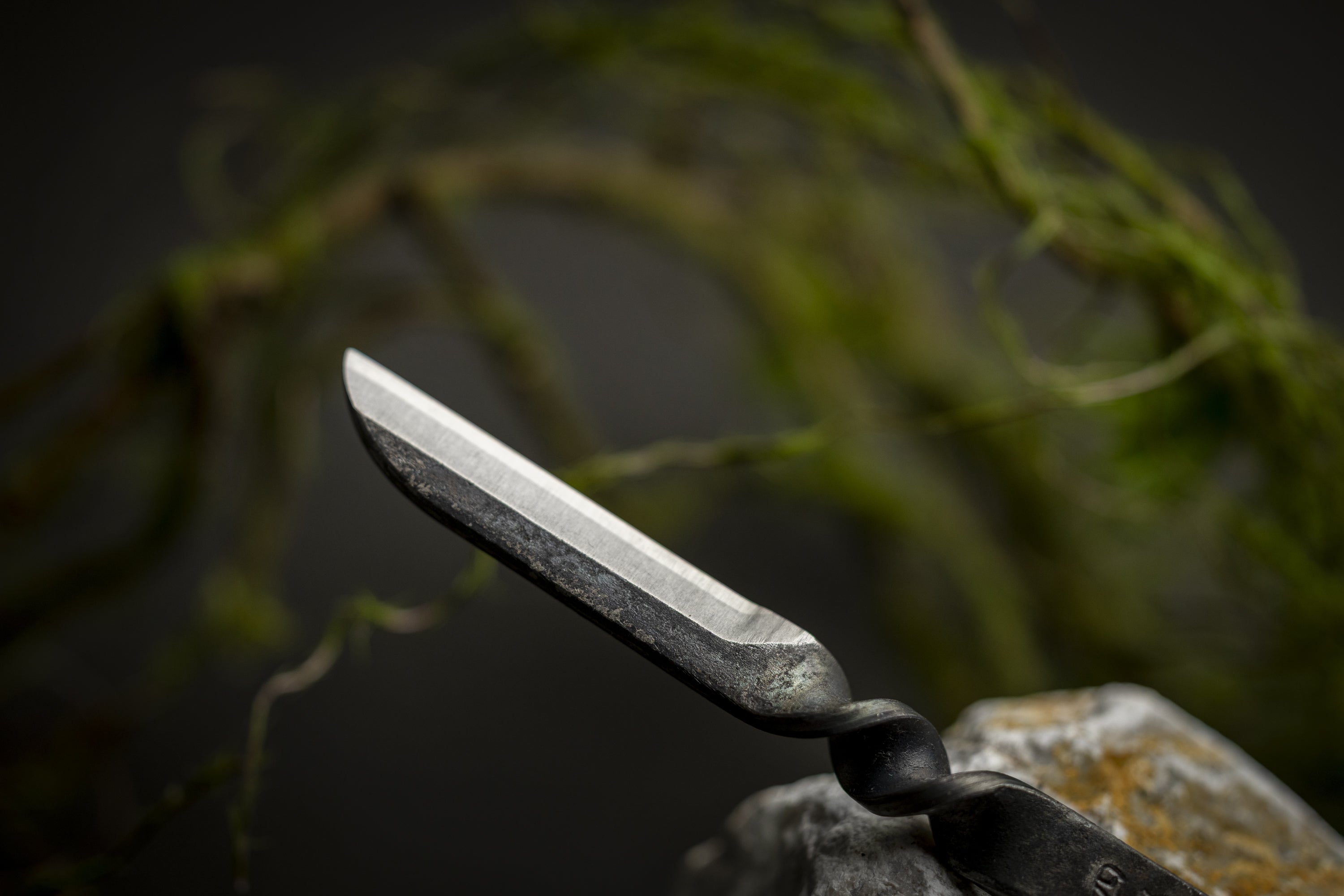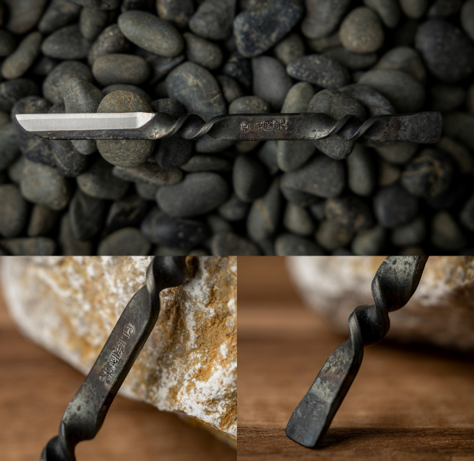 ナイフを手で持つ部分が特徴的で、ねじれ加工を施しており美観と握りやすさを両立させたハンドルとなっています。