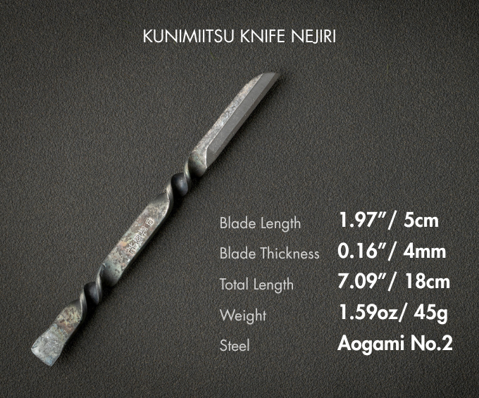 このナイフの刃には島根県安来市の日立金属(現プロテリアル)冶金研究所で開発された安来鋼の青紙2号が使用されています。
