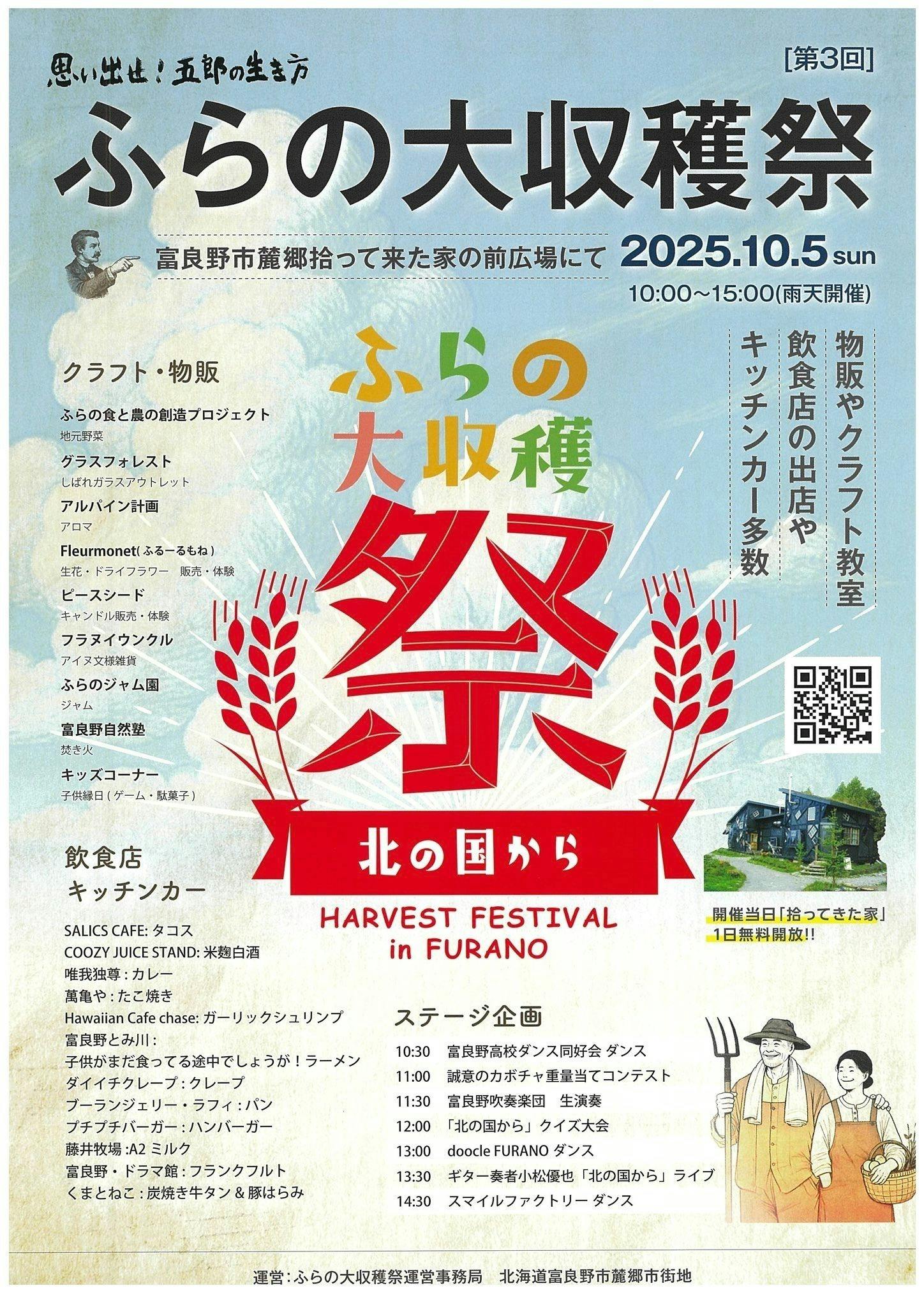 「ふらの大収穫祭」は、2022年にテレビドラマ「北の国から」40周年記念開催として第1回開催が行われました。その後、2023年に第2回開催が行われ、今回で第3回目の開催となります。