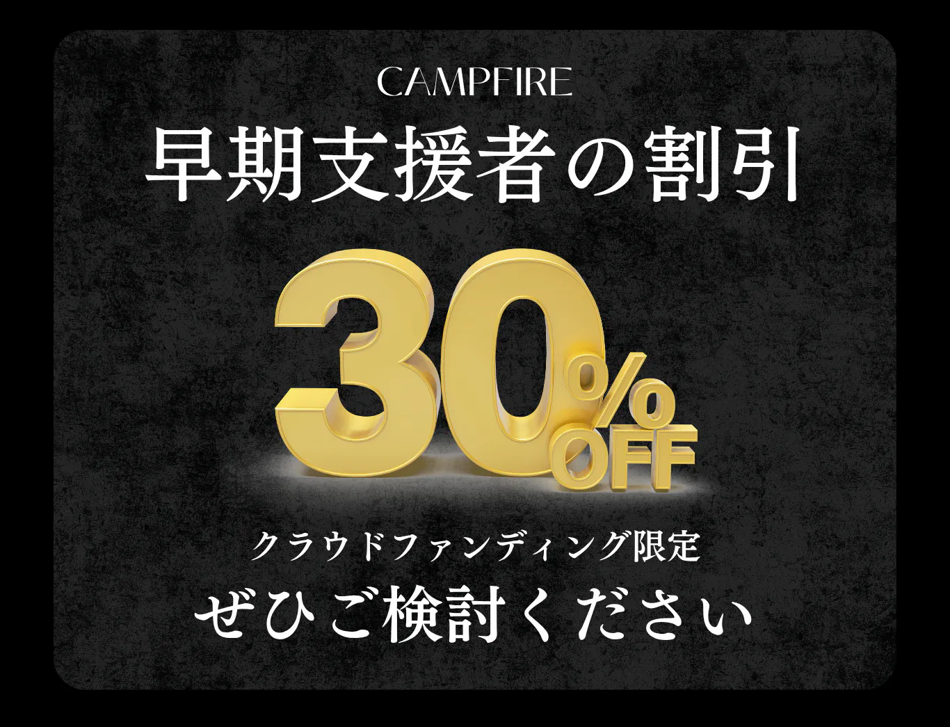 リターン価格:26,200円 (販売予定価格:32,760円) ※リターンはすべて税・送料込みの金額になります。 ※皆様の支援により量産効率が向上した場合、正規販売価格が販売予定価格より下がる可能性もございます。 類似商品が発生する可能性があります。ご了承頂いた上でご支援頂けます様お願い致します。 【配送時期】 商品到着は2025年12月を想定しております。 ※製造状況により出荷時期が遅れる場合がございます。 ※商品代を安くする為に工数削減をしており出荷連絡は致しません。活動報告をご覧ください。 ※配送時間の指定は承っておりません。万が一ご不在の場合は、不在票がポストに投函されますので、お手数ですが再配達の手続きをご自身でお願い申し上げます。 ※保管期限超過などにより荷物が弊社へ返送された場合、再送手数料および送料(1,800円)をご負担いただきます。