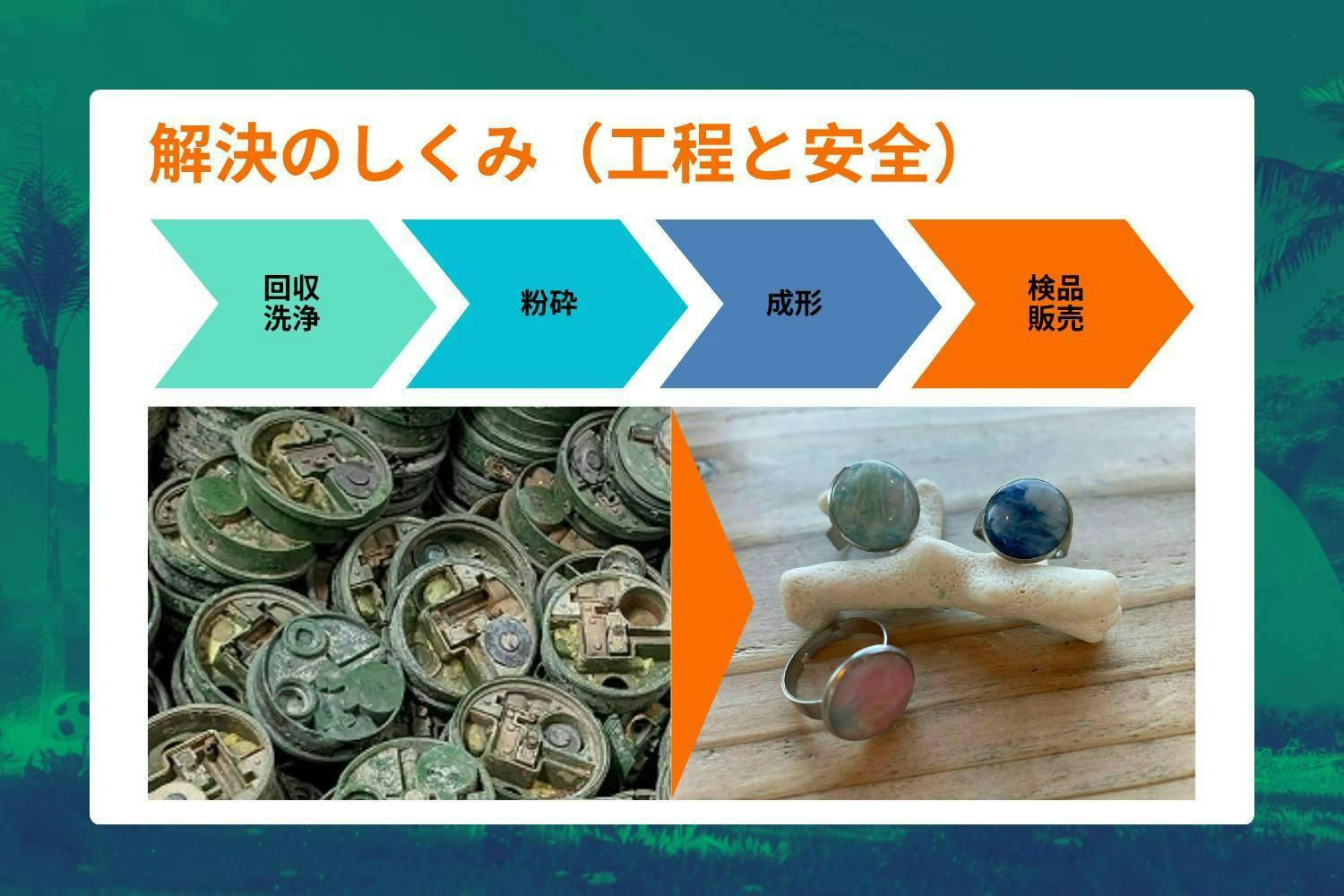 解決のしくみ(アップサイクルで「地雷を、宝物に。」)