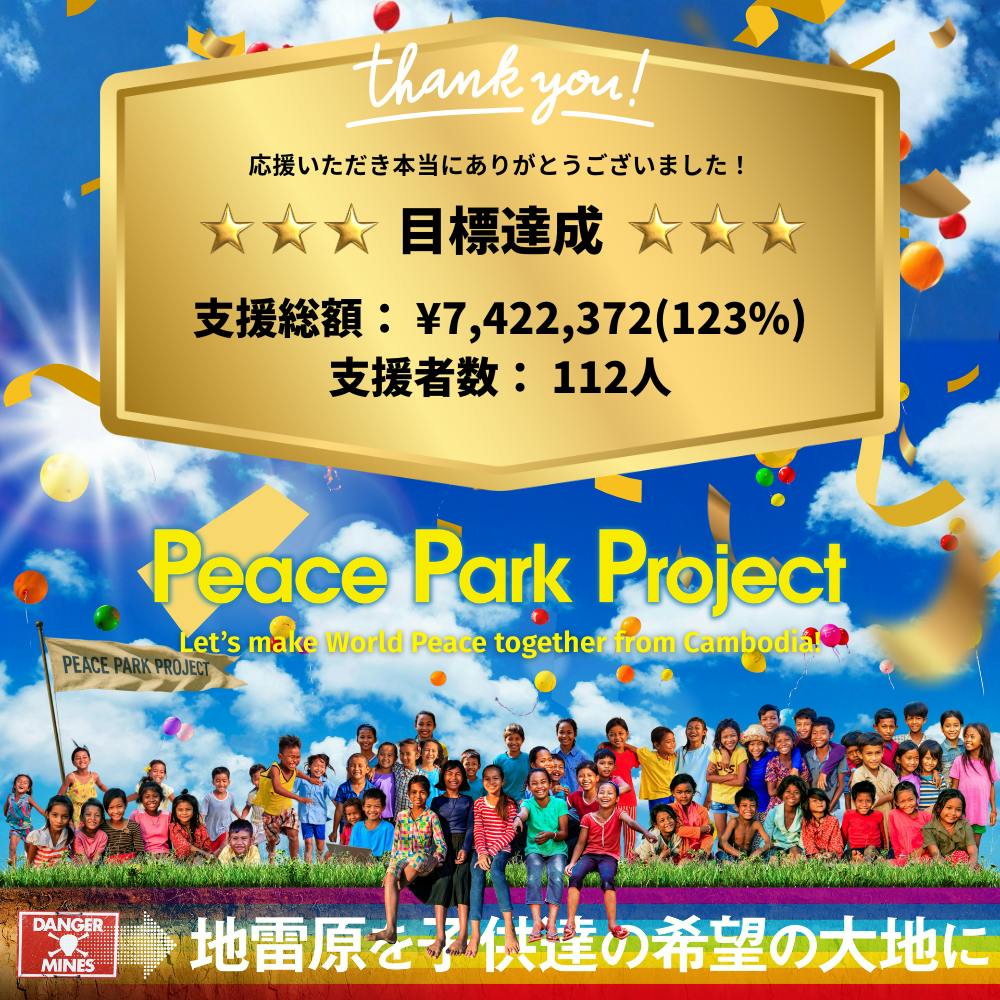 2026/02/27 00:17支援者のみなさま、応援してくださったみなさまただいまクラウドファンディングの募集期間がすべて終了いたしました!最終的な結果をご報告させていただきます。支援総額:7,422,372円(目標比 123%)支援者数:112名目標を大きく上回る、温かく力強い応援をいただき、無事にこの日を迎えることができました。これまで拡散やメッセージで支えてくださったみなさま、本当に、本当にありがとうございました!ここからは、リターンの準備はもちろん、プロジェクトの本格的な「実行」フェーズへとギアを入れ替えていきます。世界の見え方が変わるツアー、そして平和をつくるピースパーク&ファクトリー。カンボジアから、新しいワールドピースを形にしていきます。まずは取り急ぎ、募集終了のご報告と心からの感謝を込めて。ここから始まる冒険を、引き続き一緒に楽しんでいただけたら嬉しいです!「さぁ、ここからだ!」Let’s make World Peace together from Cambodia! もっと見る