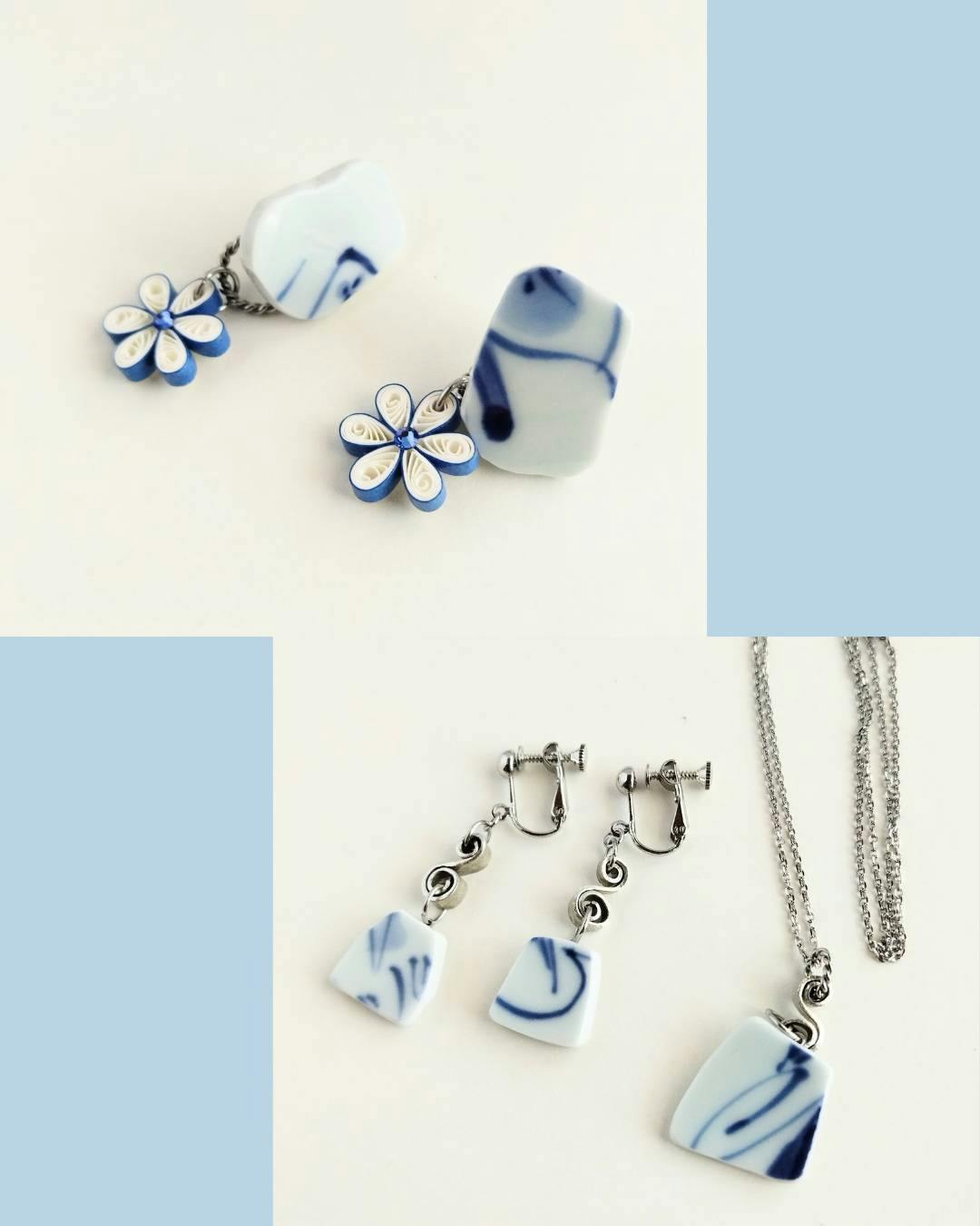 壊れた陶器のかけら“陶片”と、繊細な“ペーパークイリング”を組み合わせた作品です。