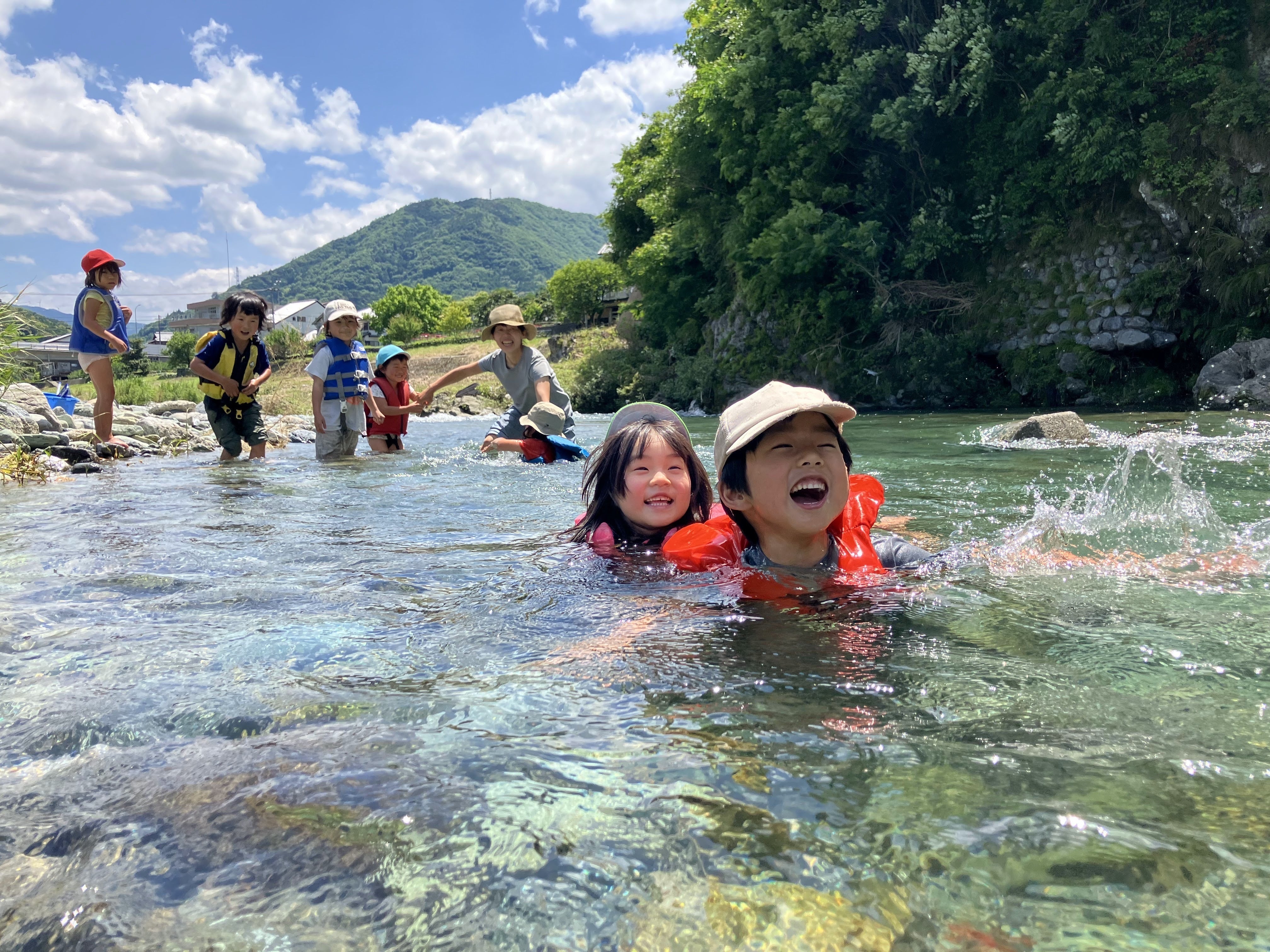 新たな場所には園舎としての建物がなく、こどもたちは、雨の日には雨を楽しみ、暑くなれば川あそびに行きと、周辺の豊かな自然を全身で存分に感じながら逞しく過ごしてきました。