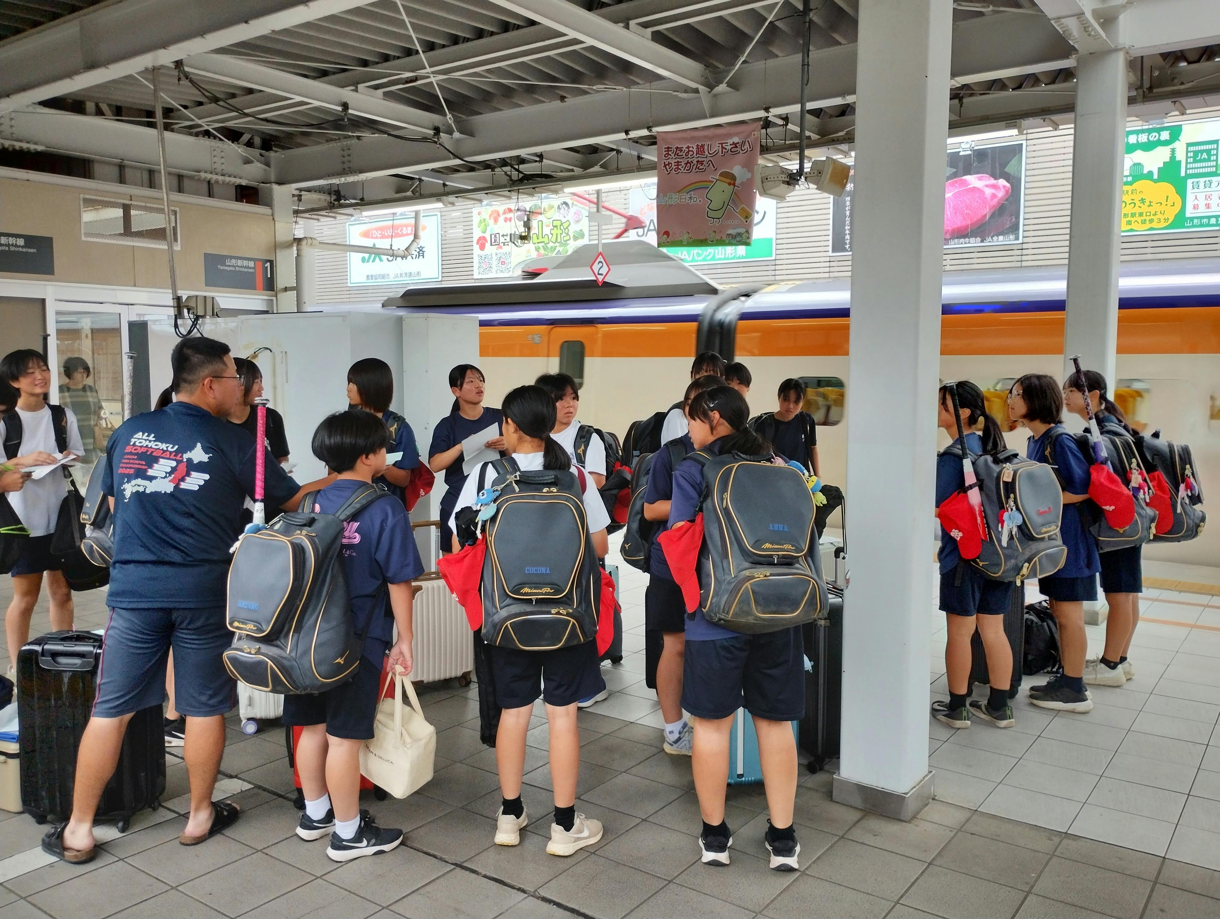 本日16日、山形7:12発つばさ124号で選手17名が元気に大分県へ出発しました。