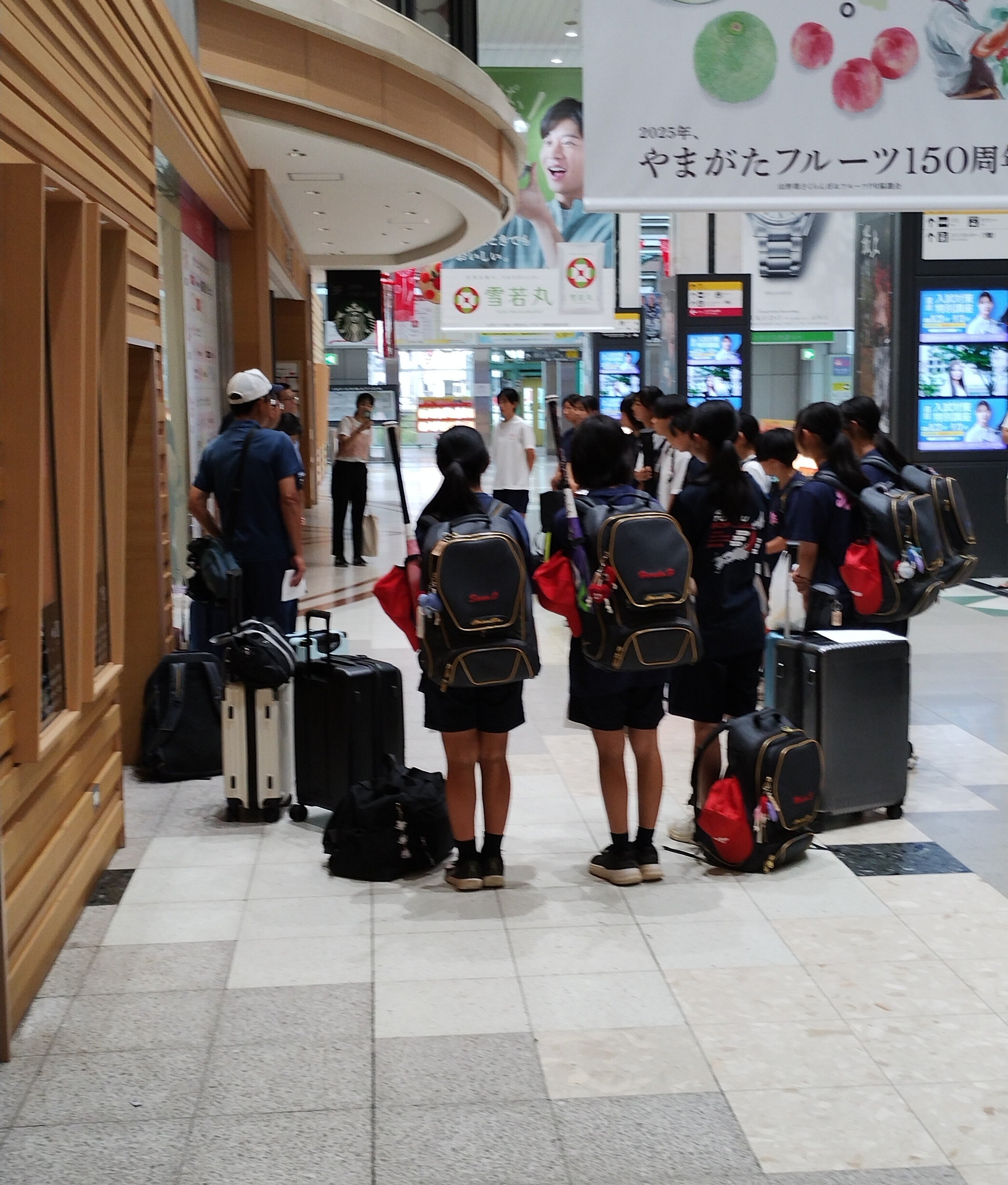 お早うございます。本日16日、山形7:12発つばさ124号で選手17名が元気に大分県へ出発しました。大分駅には、16:37着予定です。頑張れ!!!山形五中ソフトボール部