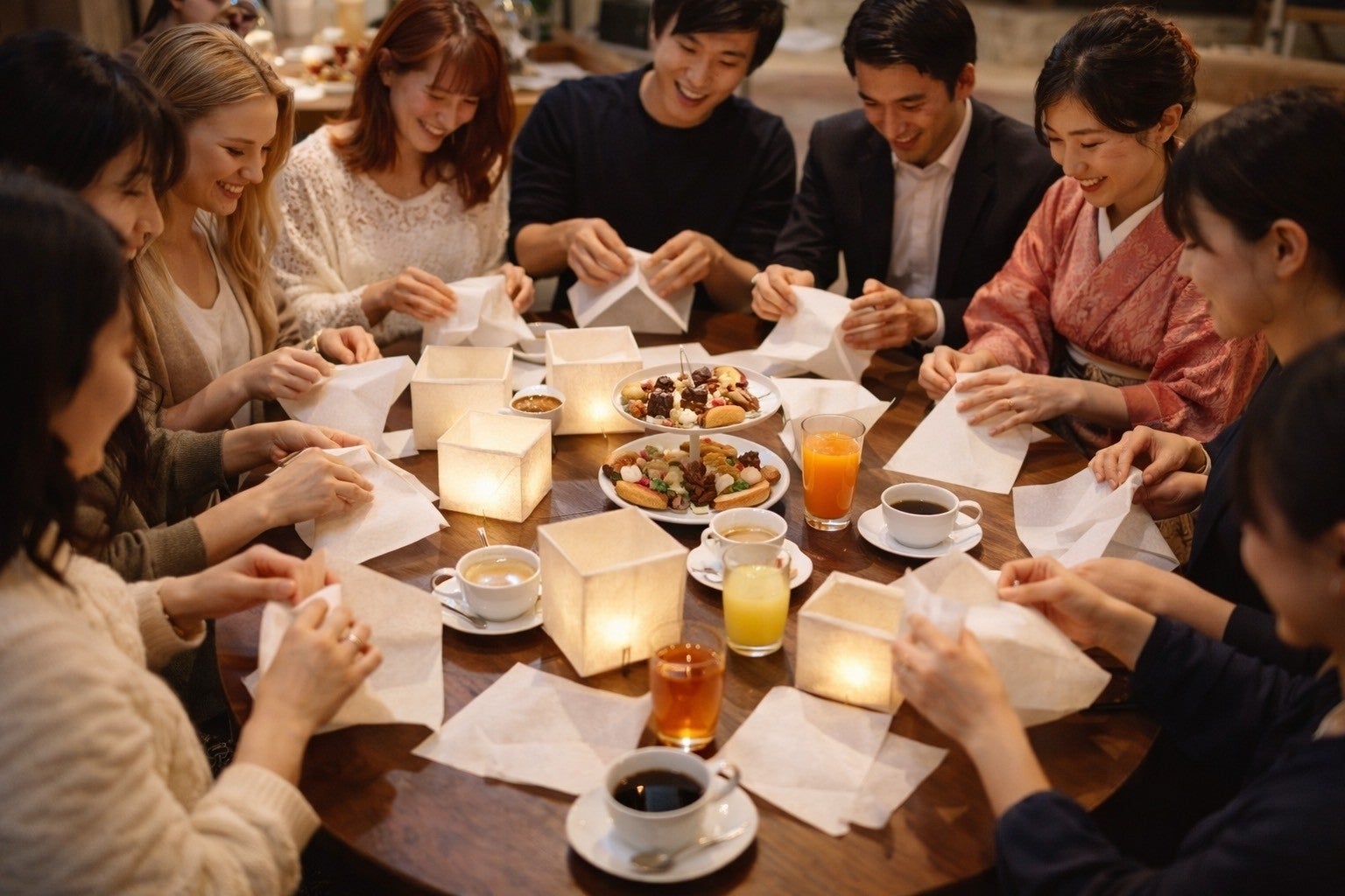 2026/04/21 20:00日本でリアル参加できる唯一のイベント【灯籠準備お茶会】が開催されました4月19日(日)に開催された【灯籠準備お茶会】ご参加いただいた皆さん、本当にありがとうございました!今回のお茶会はクラウドファンディングのリターンとして設定させていただいたものです。現地の空間アートで使用する灯籠を一緒に折って、自分で名前を入れられるというお茶会を開催いたしました。リアルな体験として参加できるリターンとしては日本ではこれが唯一のイベントでした!当日は天気も良くみんなで着物を着た会場はとても華やか。Kanokoさんのお花と、しとろんがイベントにちなんで用意してくれたお花の着物。パリでも有名なマカロンは桜味。今回紅茶を仕入れさせていただいたtea-fullさんのカカオグレイの紅茶がお茶会のイメージに合ってて、なんともホクホクした気持ちでテーブルを囲みました。今回のお茶会のメインイベントとも言える灯籠作りでは和紙の質感に触れながら、45×45cmの大きな和紙を折り紙のように折っていきます。みんなでワイワイと折り方を確認しながら進める作業は時間を忘れて楽しんでいただけました。そして、お茶会直前に思いついた習字での名入れ。着物の方もいる中で、汚れなどの不安要素もあり、当初は筆ペンでの名入れを検討していました。しかし、テストを重ねるうちに体験としての純粋な面白さが、この時間をより特別なものにしてくれると思い、しとろんと相談を重ねて、安全な形での実現に至りました。1つ1つ準備してきたものが、参加してくださった皆さんの中に特別な体験として残ったことが嬉しかったです。さて、クラファンも残すところあと9日!!!!気を引き締めて頑張ります!!!!引き続き、応援・シェア、よろしくお願いします!!!!!https://camp-fire.jp/projects/876110/view もっと見る