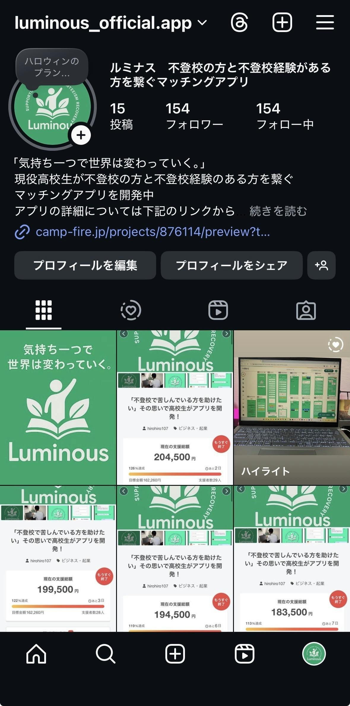 支援いただき本当にありがとうございました。目標金額を達成することができました。今後の活動の様子についてはInstagramで発信していきます。https://www.instagram.com/luminous_official.app?igsh=MWI1Z202cms0cnlyYQ%3D%3D&utm_source=qr
