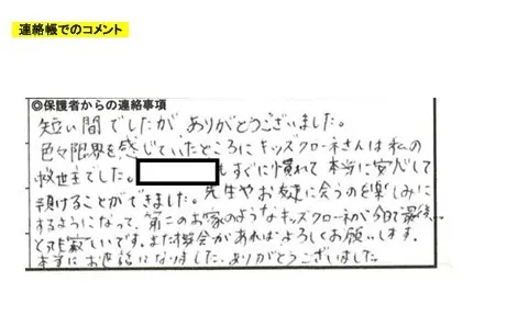 親として安心できますし、子どもの成長や楽しんでいる姿を共有していただける事にありがたさを感じています。