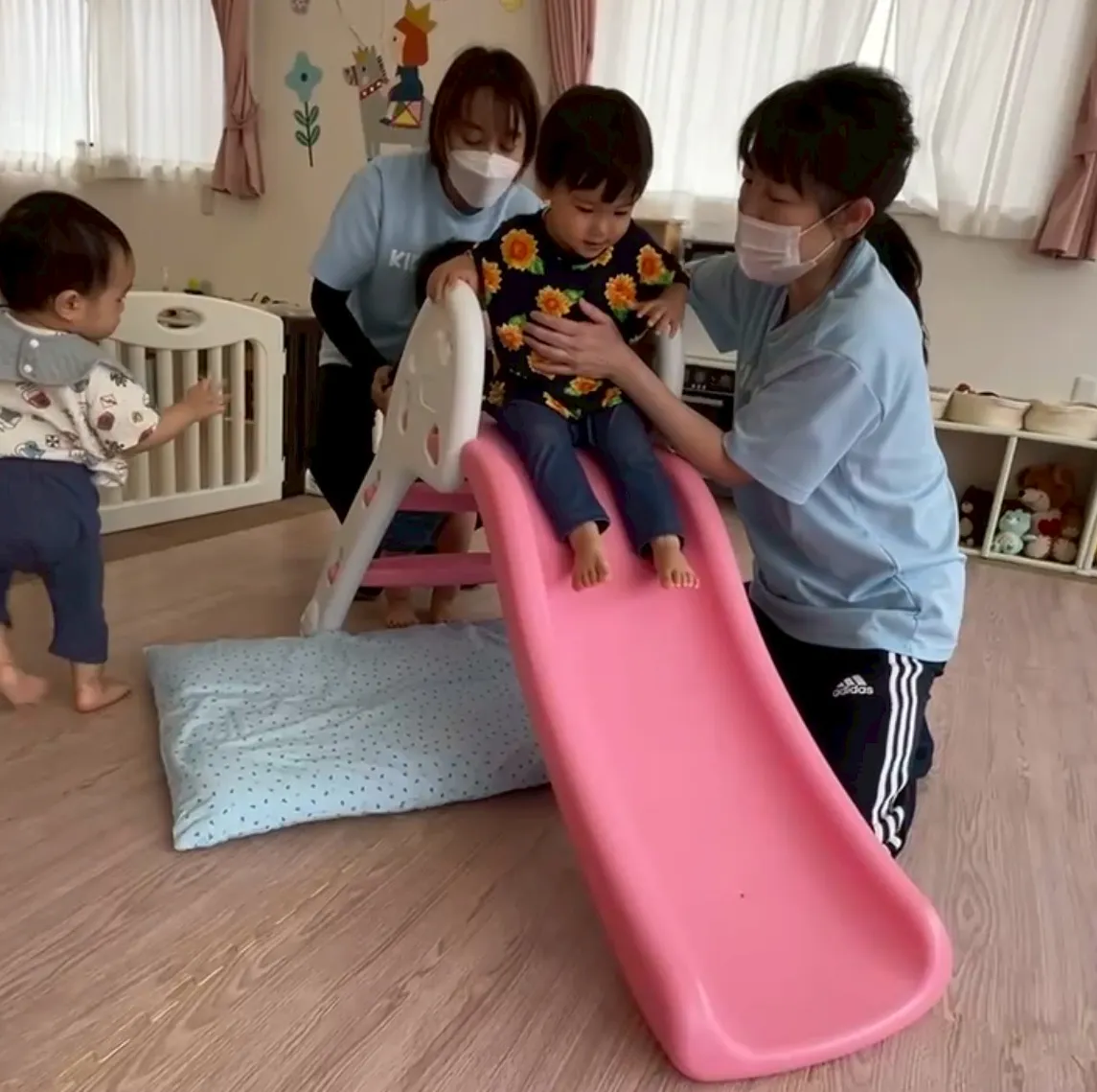 利用者は0歳3ヶ月~2歳のお子様が中心です。私も保護者様とのお話する機会があり自身の子育てと重なって日々の大変さが伝わってきます。