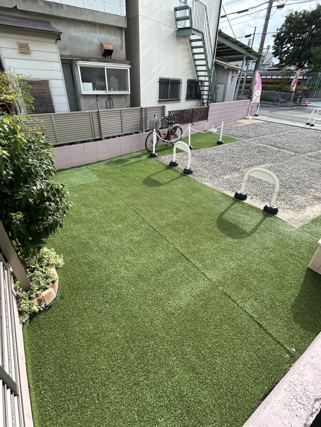 駐車場の一部を子どもたちが遊ぶための園庭として人工芝生までは敷いたのですが、安全管理のための柵の設営が出来ていないため、購入と施工に使用します。園庭で遊ぶための遊具の購入、ポータブル砂場の購入。