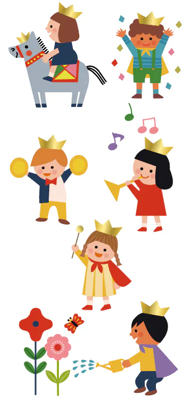 そして、絵本が大好きな子ども達は、お城から始まる素敵なストーリーに憧れを持ち、色紙や新聞紙などで冠を作り王子様やお姫様になりきってのごっこ遊びへと広げていました。”こども達みんなが主役!”心豊かに楽しい時間を過ごしてほしい、とびきりの笑顔になれる場所にしたいという想いをこめ