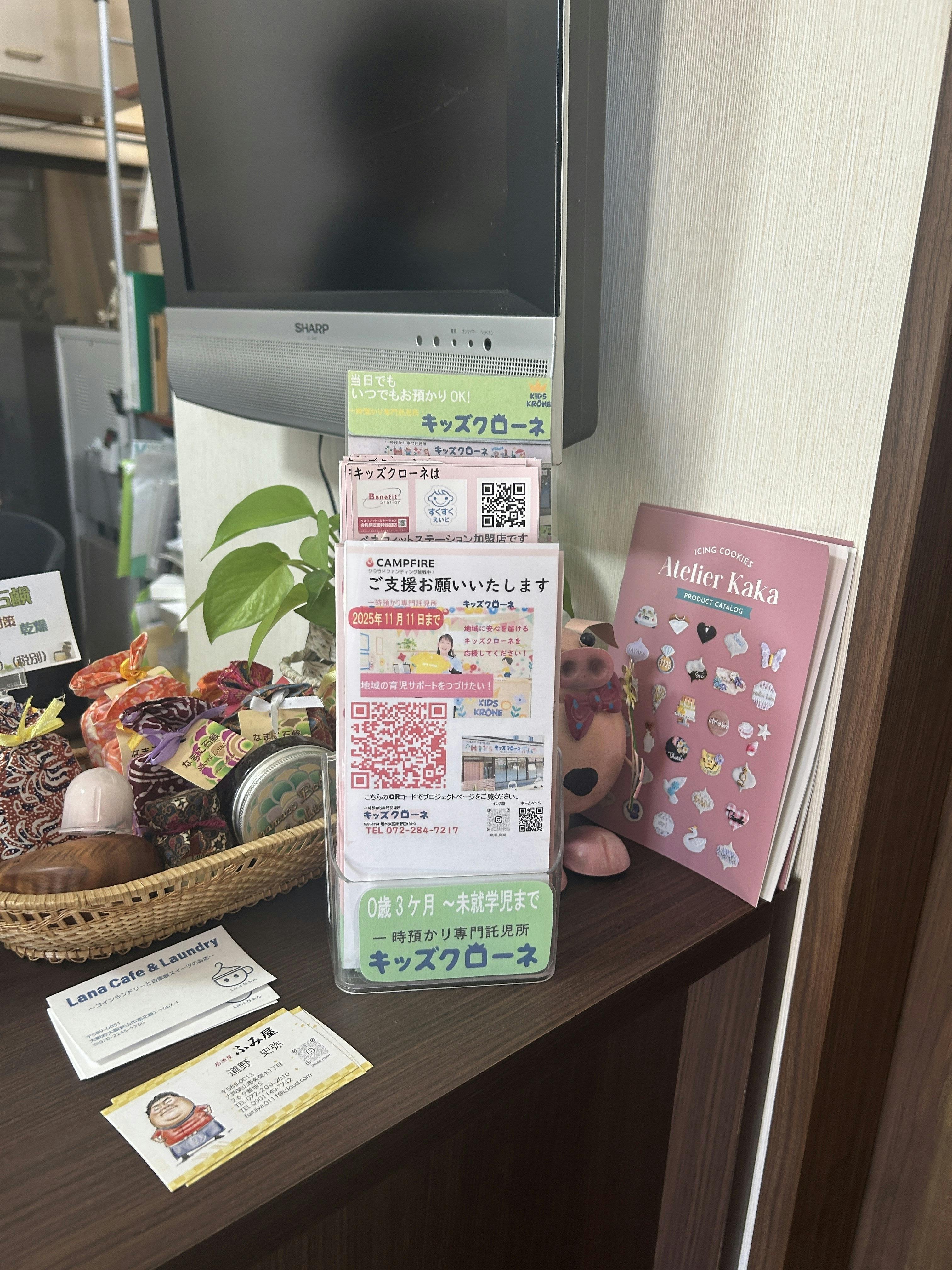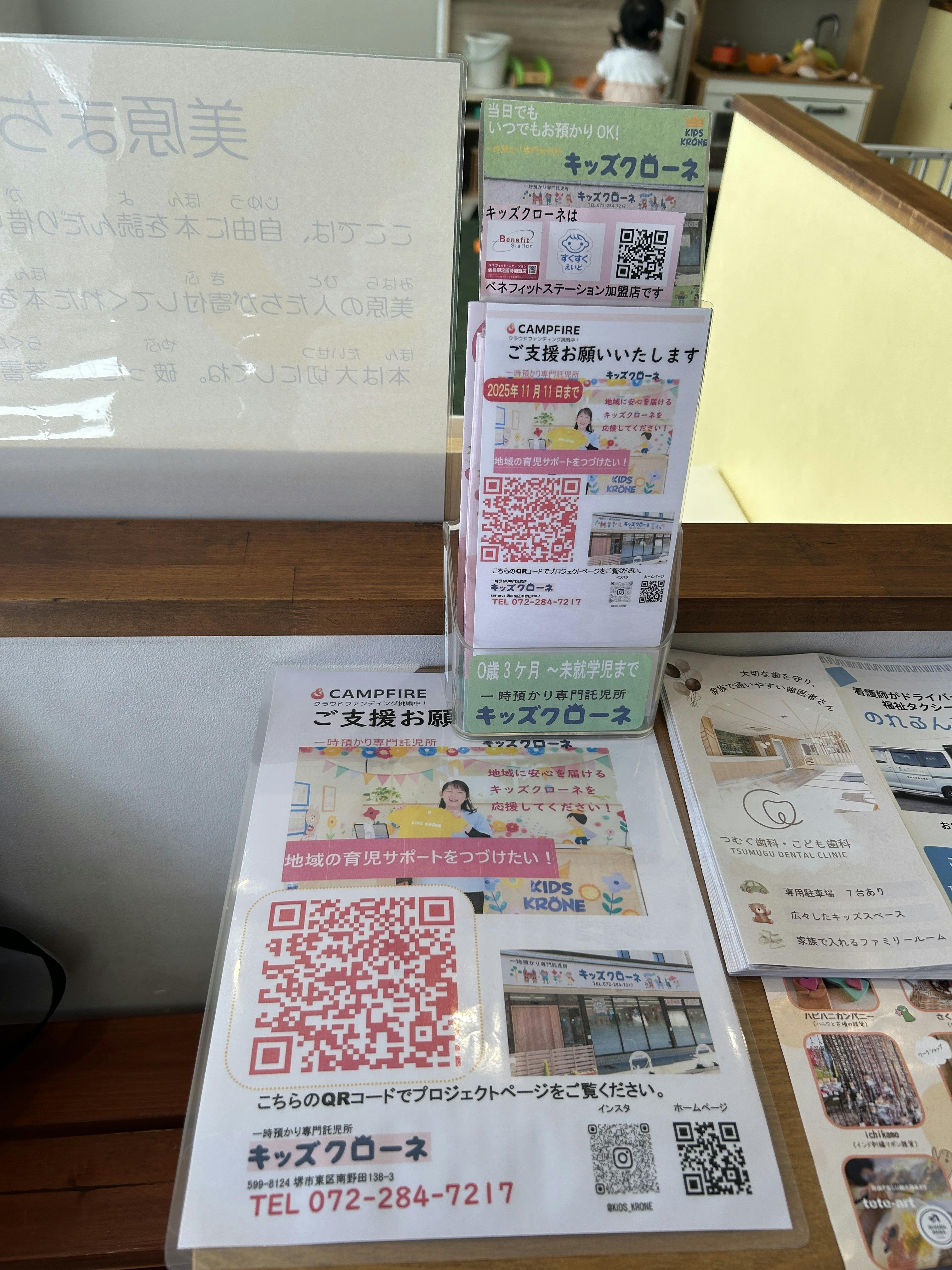 日頃からお世話になっている、パンフレット設置協力店様にクラファンに挑戦しているPOPを張っていただきました。ホームページ・SNSなどのネットワーク内だけでなく普段利用していただいているお店で発見していただけるようご協力をしていただいてます。