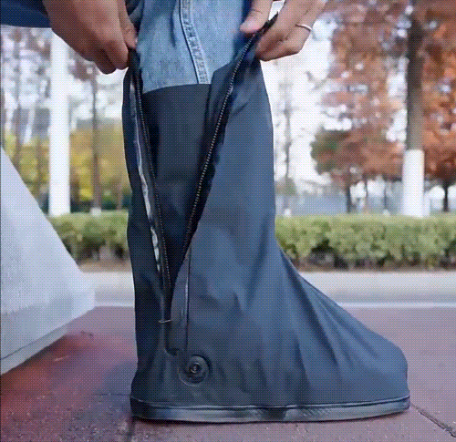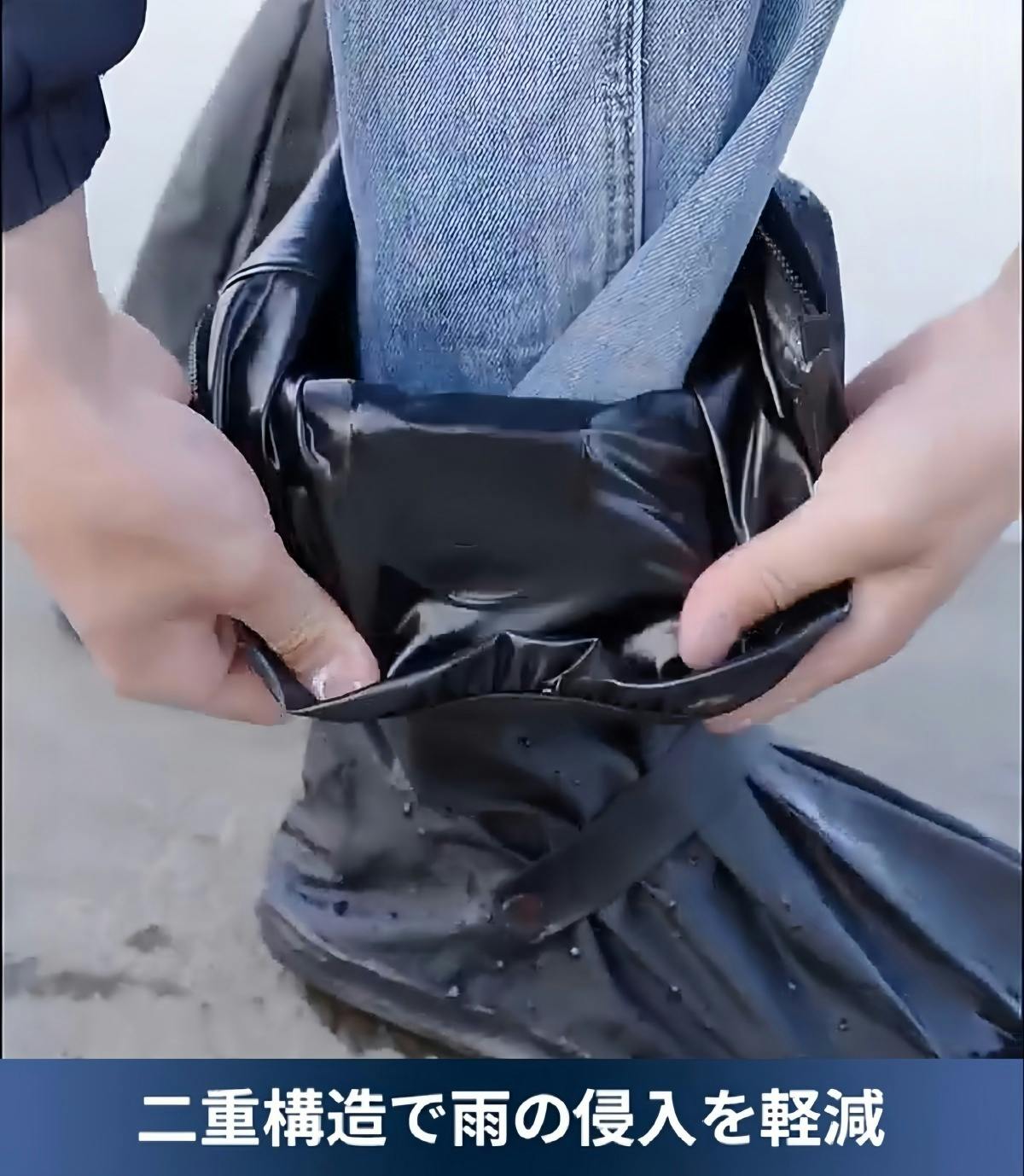シューズカバーは完全防水のPVC素材を使用しており、厚さが適度で軽量かつ耐摩耗性があります。ファスナーと内部の扇形防水層の二重防水設計により、水や汚れの浸入をしっかり防ぎます。靴の上から履くだけで、大切な靴を水や泥から効果的に保護できます。