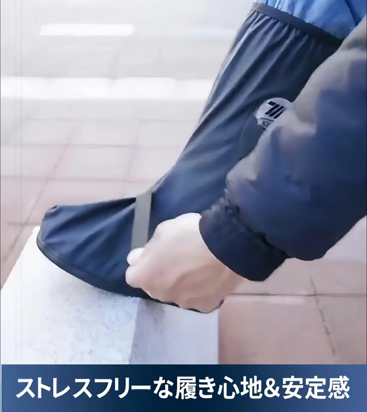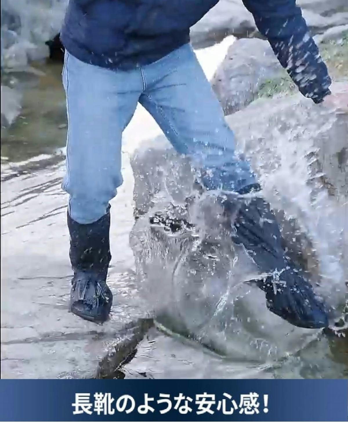 防水性のある靴カバー(レインブーツカバー)です。水辺などでの使用に適しており、靴を濡らさないように保護します。