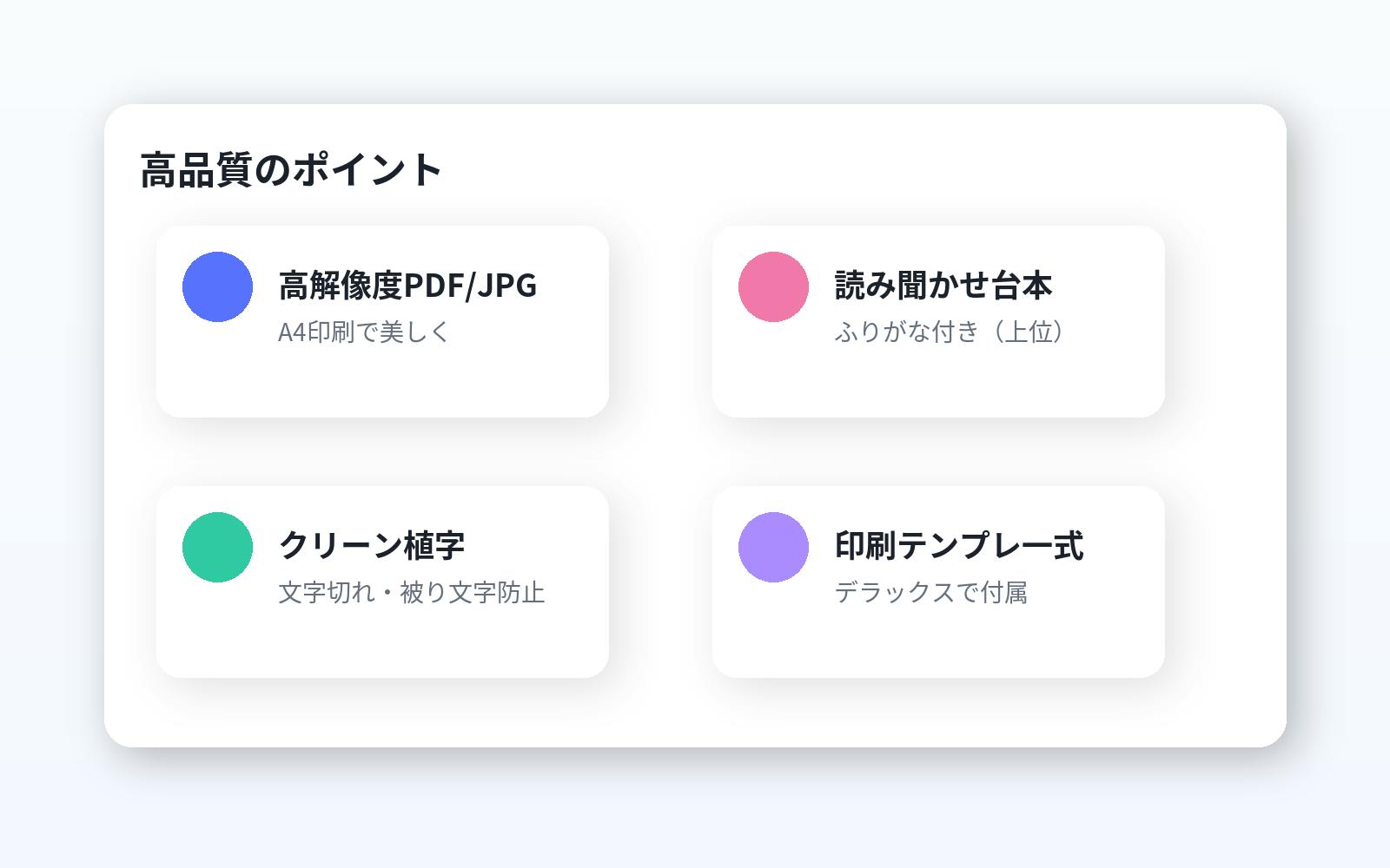 ・文字切れは**“クリーン植字”**で解決(自動折返し&安全余白)。