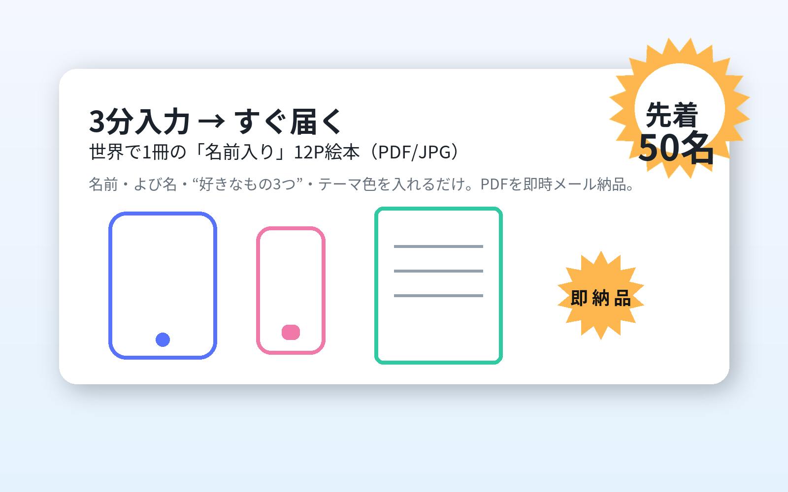 それが、入力3分 → 即時メール納品の“名前入り12P絵本”。