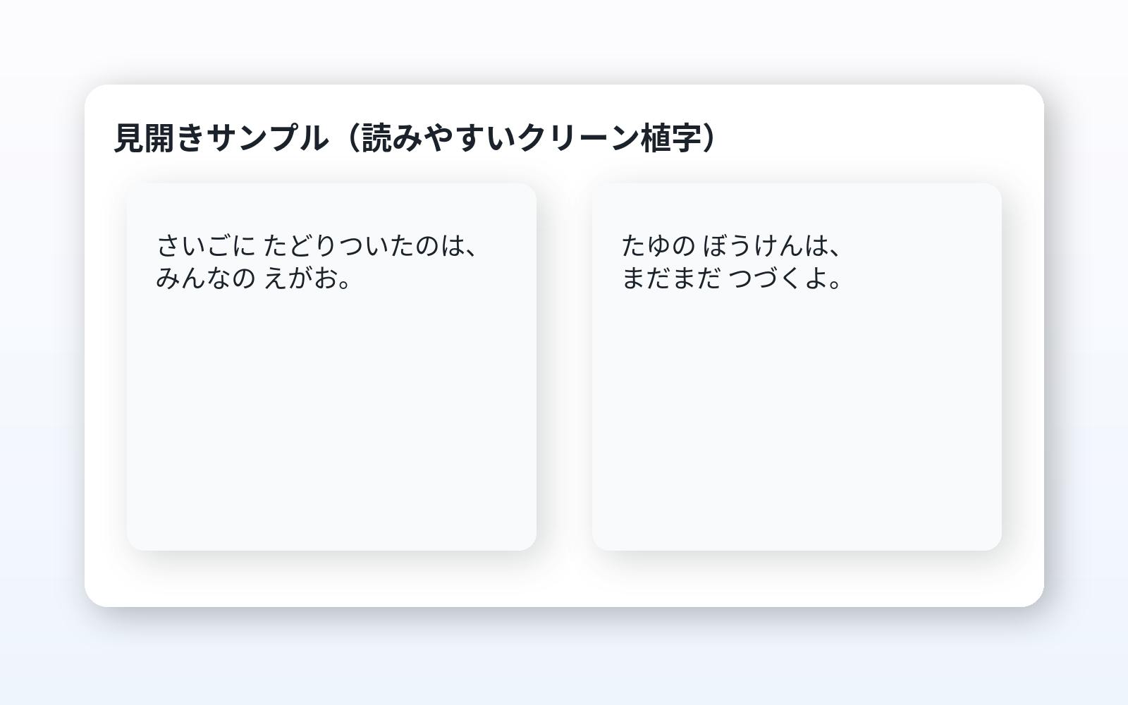 ・読みやすさ:ひらがな中心・行間ひろめ・クリーン植字で文字切れゼロ設計