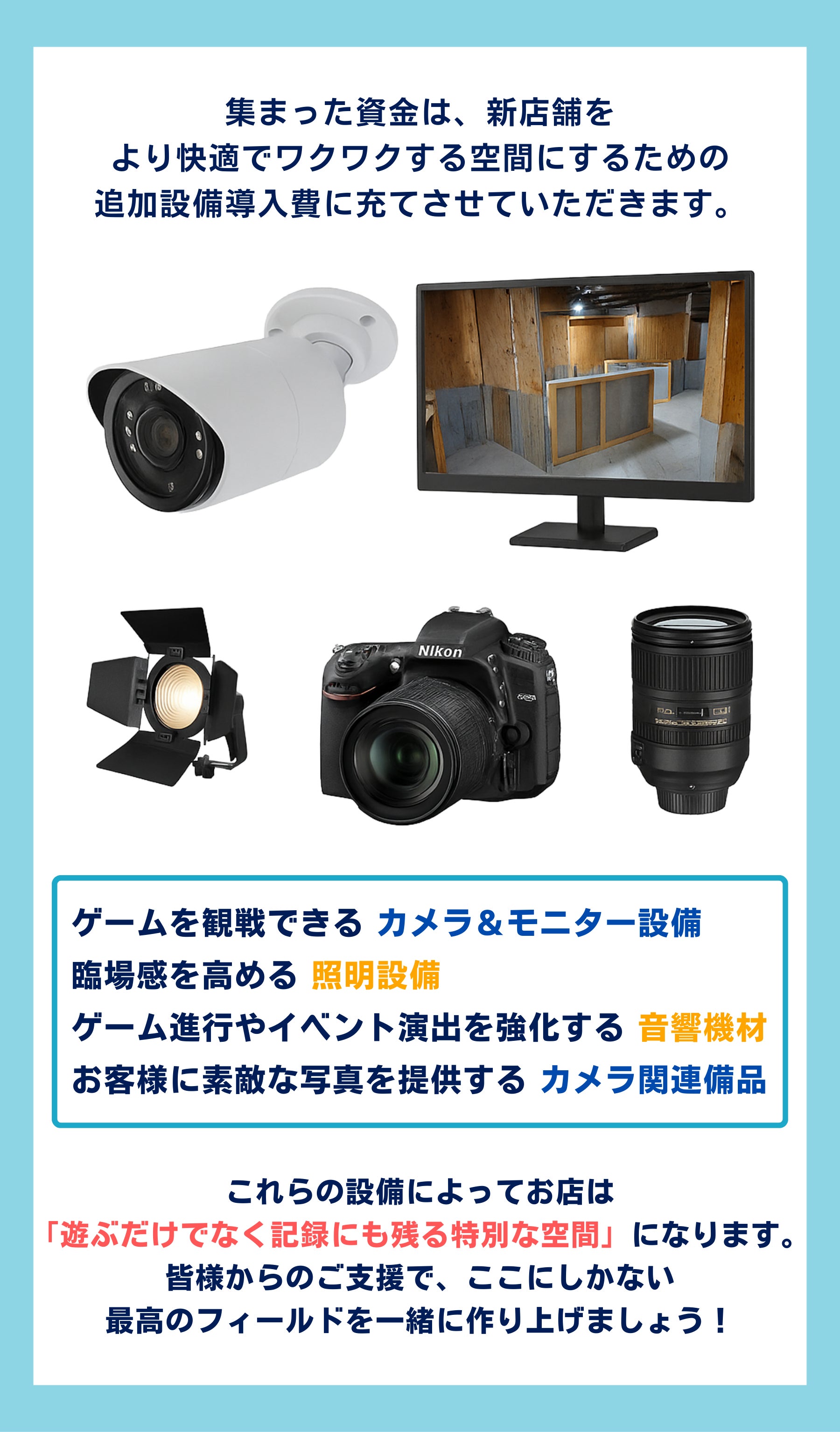 2025/11/01 14:249月から開始したクラウドファンディングは、昨日無事に終了いたしました。最終結果は総支援金額 4,007,300円/支援者数 267名。設定していたラストゴール400万円を達成することができました。終盤の大きな後押しに、スタッフ一同、驚きと感謝の気持ちでいっぱいです。心より御礼申し上げます。また、CAMPFIREにおける「サバイバルゲームフィールド」案件として、支援金額・支援者数ともに1位となりました。重ねてありがとうございます。これはゴールではなく、本厚木店オープンへ向けた新たなスタートです。リターンアイテムはこれから製作に入り、できる限り早くお届けできるよう進めます。設営・準備の進捗は今後も随時お知らせしますので、引き続き変わらぬ応援を何卒よろしくお願いいたします。 もっと見るライティングレール設置ほぼ完了/スポット点灯まで確認
