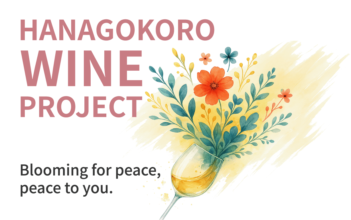 ワインは、ただの飲み物ではなく、出会いやご縁を運んでくれる存在だと、常々感じています。HANAGOKORO WINE PROJECTもまた、そんなワインが結んでくれたご縁から始まりました。心が荒んでいるとき、人はワインを心から楽しむことができません。だからこそ、ワインは「心が穏やかであること」の象徴でもあるのだと思います。一杯のワインから芽生える「小さな平和」が、誰かと分かち合われ、確かに広がっていくことを願っています。