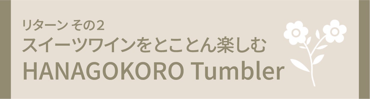ハンドメイドの「HANAGOKORO Tumbler(ハナゴコロ・タンブラー)」は、その大容量と計算された機能美を生かし、日常のさまざまなシーンでスイーツワインの楽しみを無限に広げてくれます。