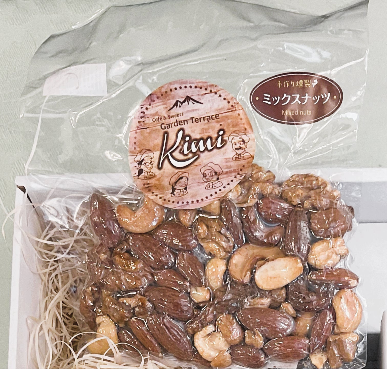 北海道産チップを使用した、Garden Terrace Kimi 自慢の燻製ナッツです。