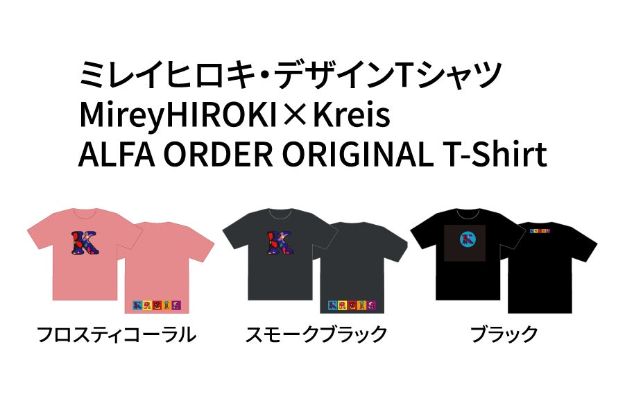 「花を描き続ける情熱と感情」を内包した展示会で発表された新たな『種』の始まりを示すイメージとともに、アルファベットを一文字だけを提示したミレイヒロキ作品「ALFA ORDER」をあしらったオリジナルデザインTシャツ。アートジェットという印刷技術を使っており、 通常のシルクスクリーンなど廉価で出来る作り方とは異なるため、アート作品の一環として展開しています。