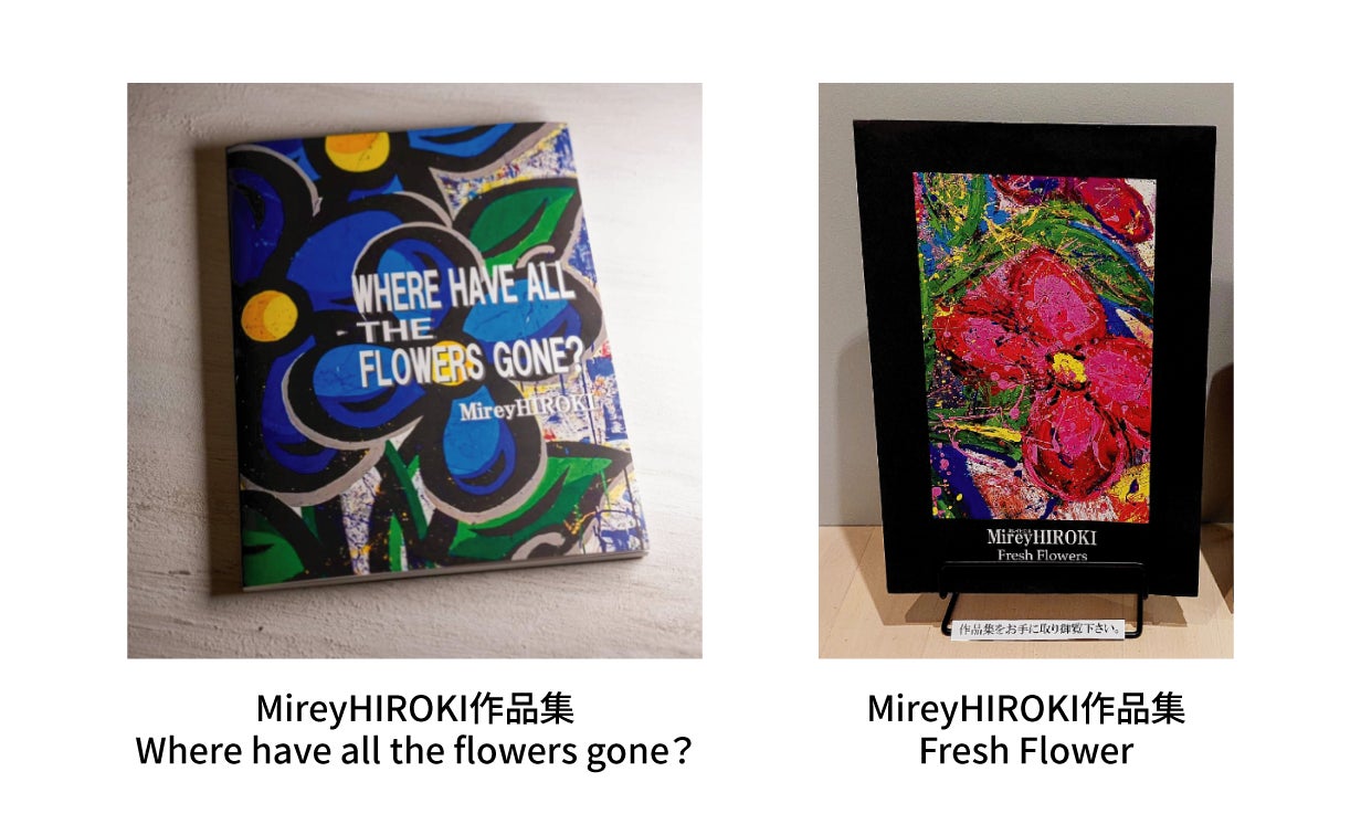 ミレイヒロキ作品集Where have all the flowers gone?は、寺山修司の「花と死には類似点がある」という言葉から着想を得た100号8点の連作シリーズ。花の生と死の関連性に着目し、自分たちの中にある花を描く衝動や動機を探求、生き続ける花と枯れていく花の相対性を描いた。スプレーペインティングを用い、タギング的要素と色のしぶきを重ね、現代の絶望的状況に抗う魂の衝動を表現。作品では対比として生命力溢れる力強い花を描き、鮮やかさと色の失われていく過程で「生と死」「再生と破壊」「戦争と平和」を象徴。タイトルは世界で一番有名な反戦歌と言われるフォークの楽曲名から引用し、現代に通じる平和への願いを込めています。