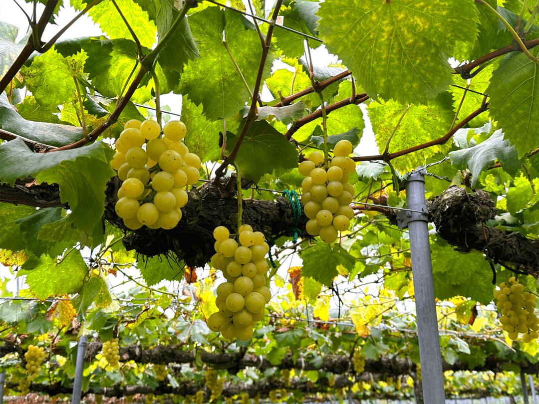 ワイン用のハニービーナスはすでに収穫を終えていましたが、今年は糖度が高く、例年以上に上質なワインが期待できるとのこと。畑に残っていた果実は糖度23度近くにも達し、ひと口含むと、芳醇な甘みが口いっぱいに広がり、一同、思わず笑みがこぼれるほどの味わいでした。