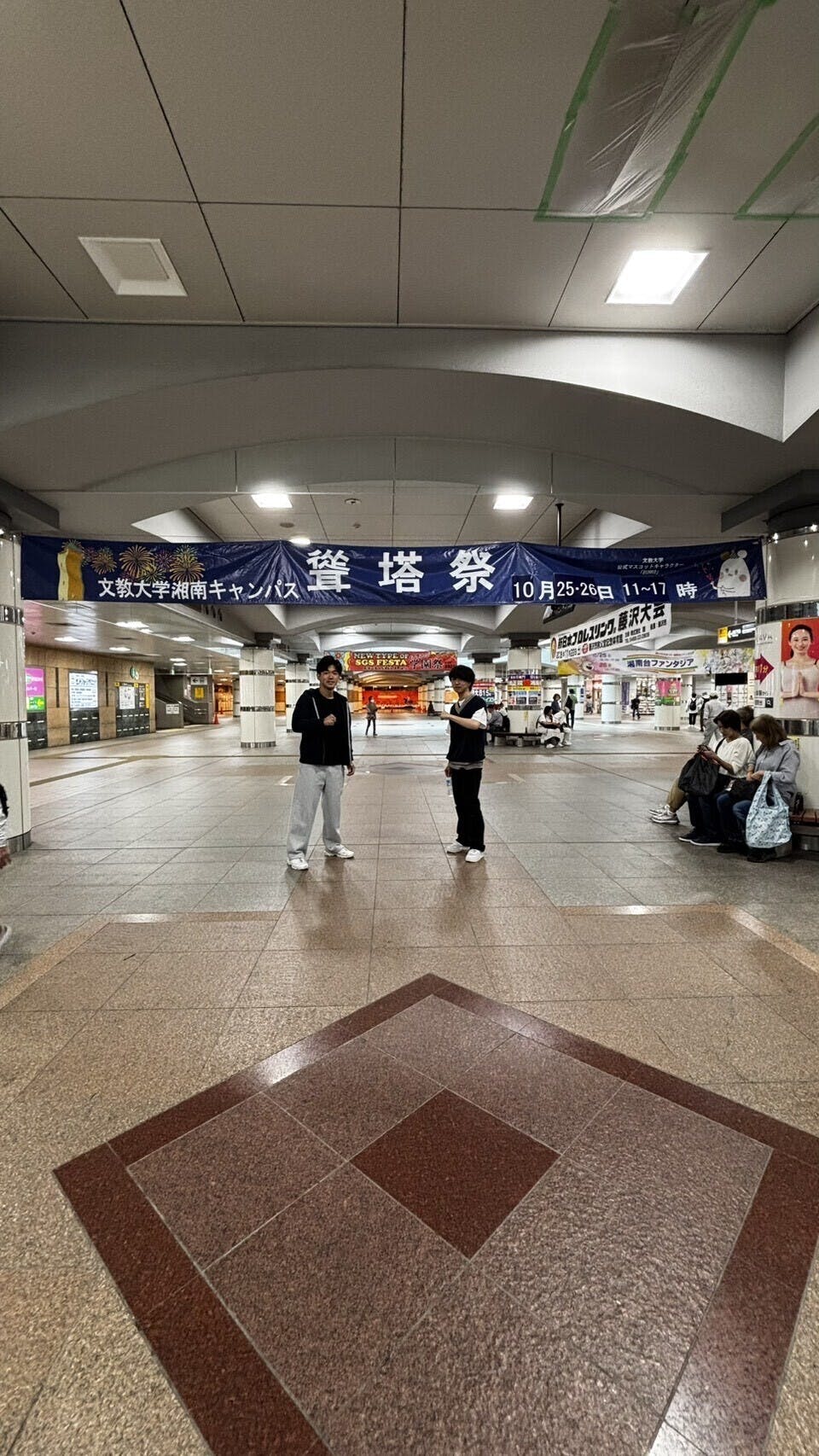 先日湘南台駅に横断幕を設置しました!横浜市営地下鉄、小田急線、相鉄線の3つの鉄道の駅になっている湘南台なのでたくさんの方に見てもらい少しでも興味を持ってもらいたいです!また湘南台駅は文教生がたくさん利用する駅なので文教生にもたくさん来てもらいたいです!!