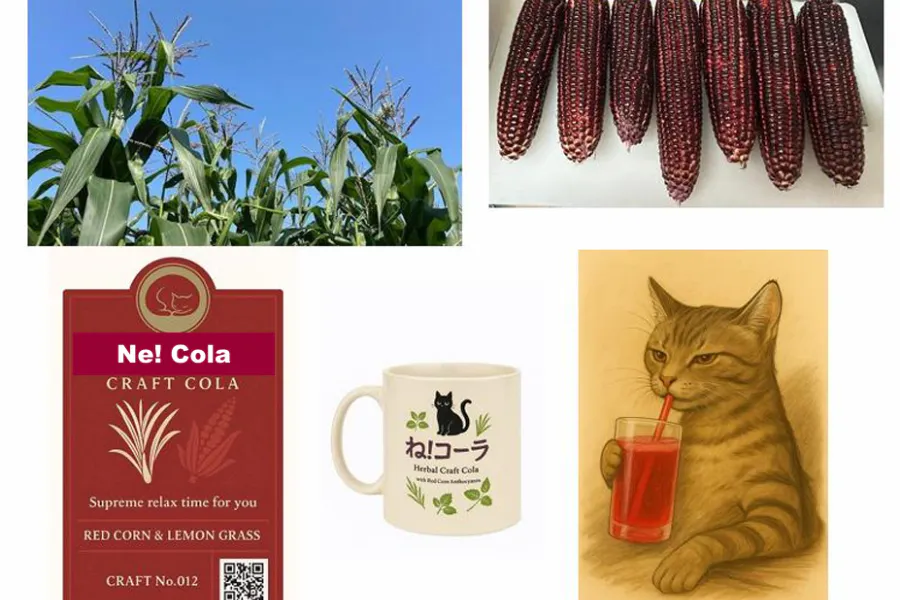 会社員生活を終え、次に何をしようかと考えたとき、私は都会の真ん中で「畑を持つ」という一つの決断をしました。 農業経験ゼロ。畑道具の名前も知らないまま、東京都内の小さな畑を確保してそこに種をまきました。 その種は、ただのとうもろこしではありません。 深いルビー色を宿す、日本ではまだメジャーではない「赤とうもろこし」です。農薬を使わず、化学肥料だけで育てたその作物は、日ごとに背を伸ばし、やがて私の肩、目線を越え… 気づけば、3メートルを超える高さとなっていました。 赤いひげを持つその作物の集団(林)に囲まれた瞬間、胸が高鳴り 「ただこれを食べるだけで終わらせるのはもったいない。」と感じました。この赤とうもろこしが持つ健康支援成分(アントシアニン=ポリフェノール)や、リラックス成分として猫のイメージのハーブ(レモングラスなど)を組み合わせた新たな飲料を提案することが、私がすべきことではないでしょうか。ドリンク製品製造についてはプロフェッショナルにお任せしつつ、原材料を提供し、構想の共有化を求めました。