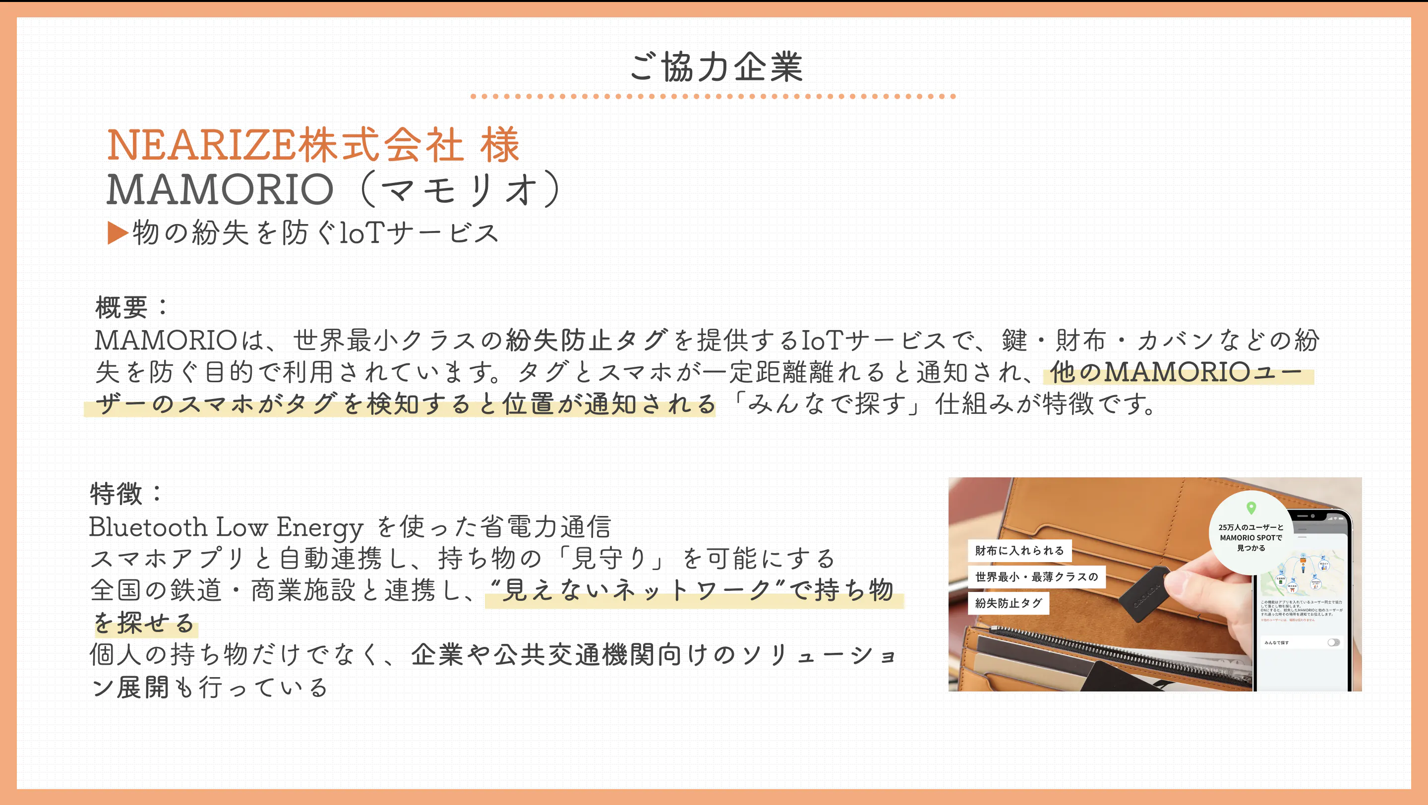 ・「MAMORIO」は各権利者の商標・サービスです。本プロジェクトはNEARIZE様の協力のもとで実施していますが、製品サポートの一部は各公式窓口をご案内する場合があります。