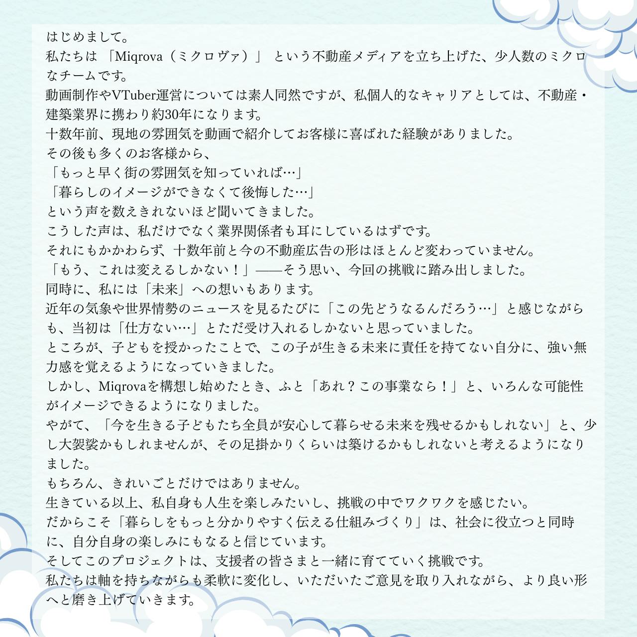 私たちのプロジェクト 「Miqrova(ミクロヴァ)」 は、VTuberを活用した不動産メディアです。