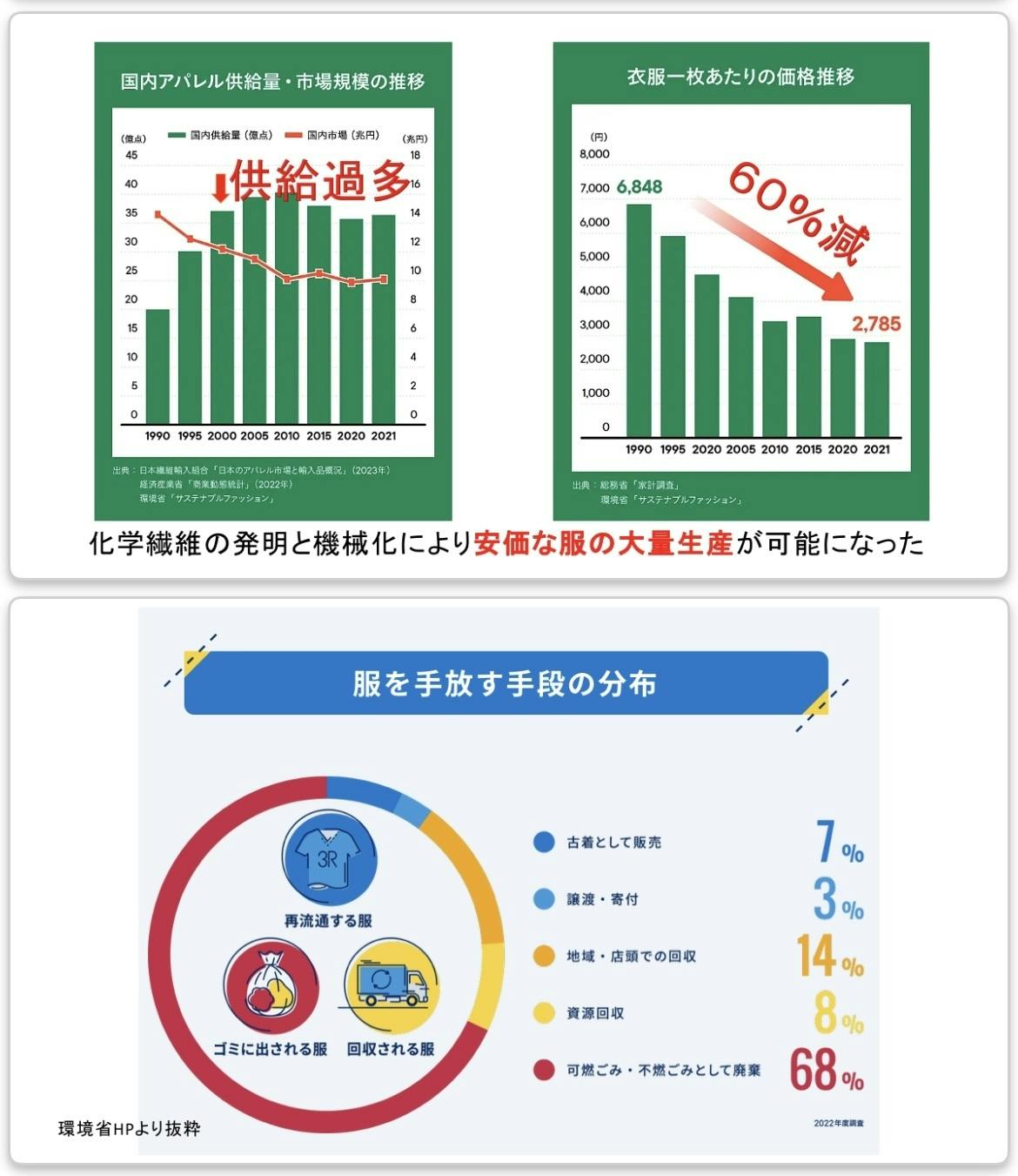 新しい服が毎年過剰に生産され、7割は廃棄されています。